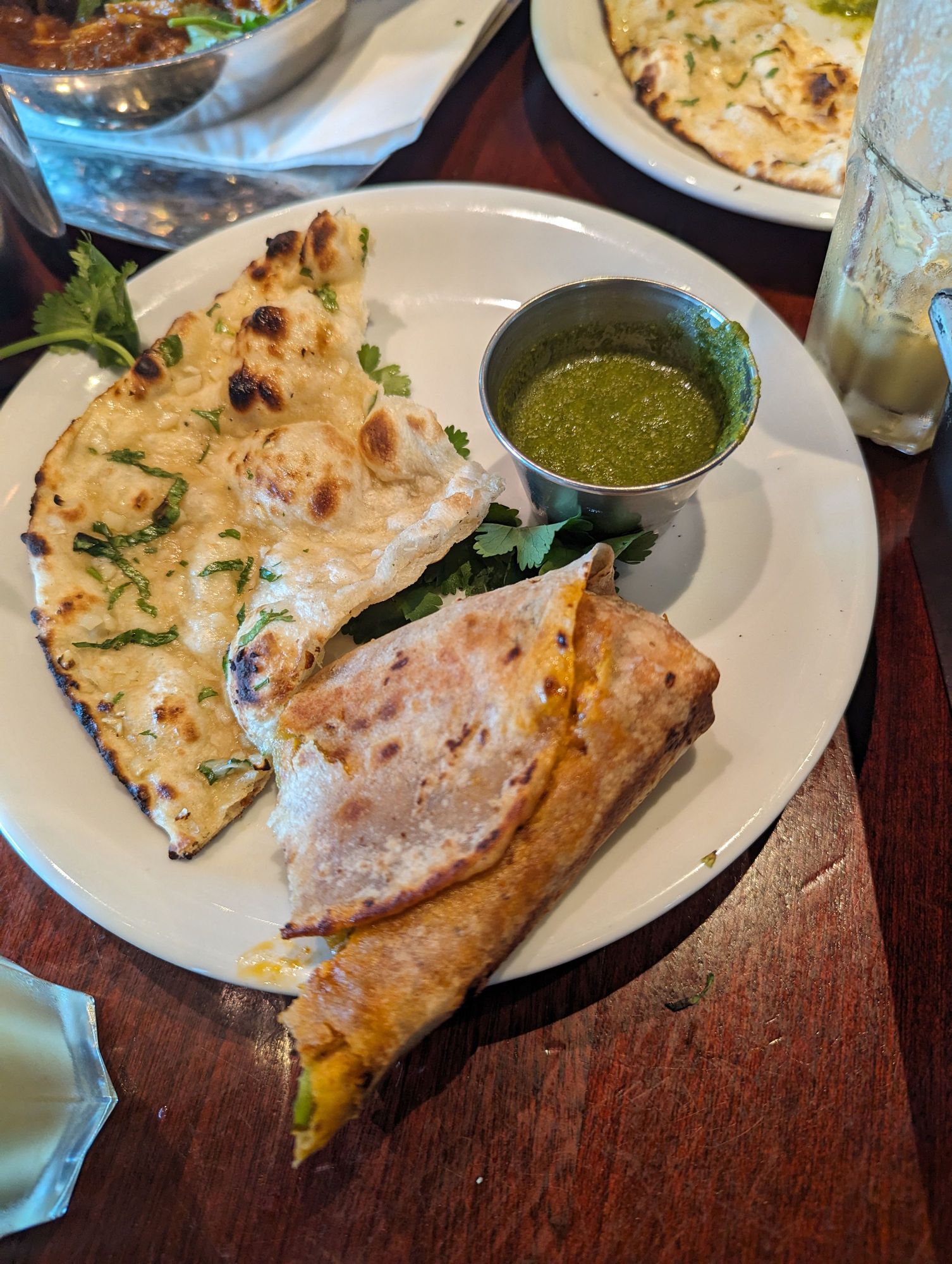 Garlic naan and a paneer roomali roll