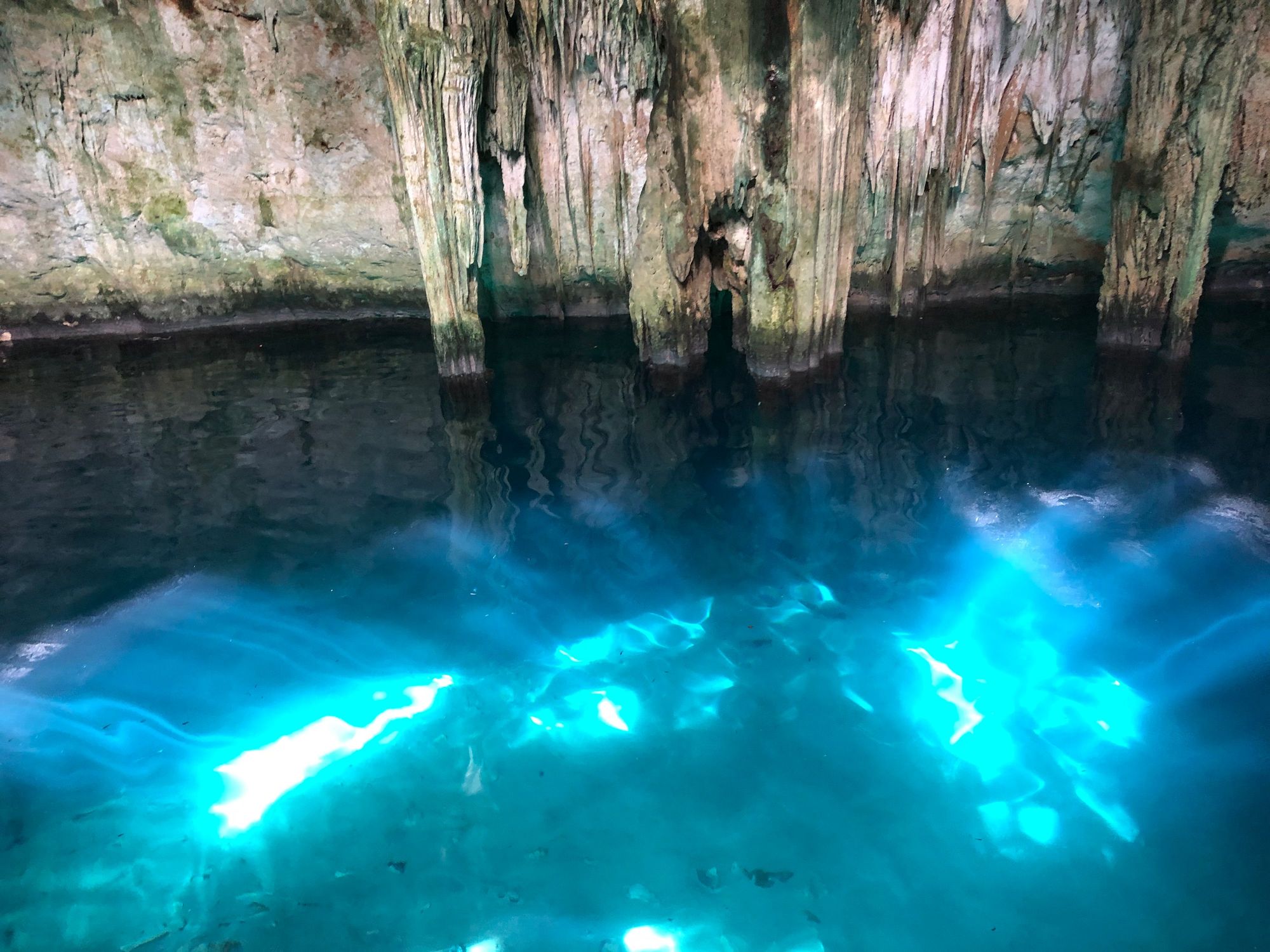 Who could imagine how beautiful these cenotes were, and how few people were swimming during our visits? There was no required tour here, as there was at another we visited. It was so large I was able to swim laps and we did not want to leave!!