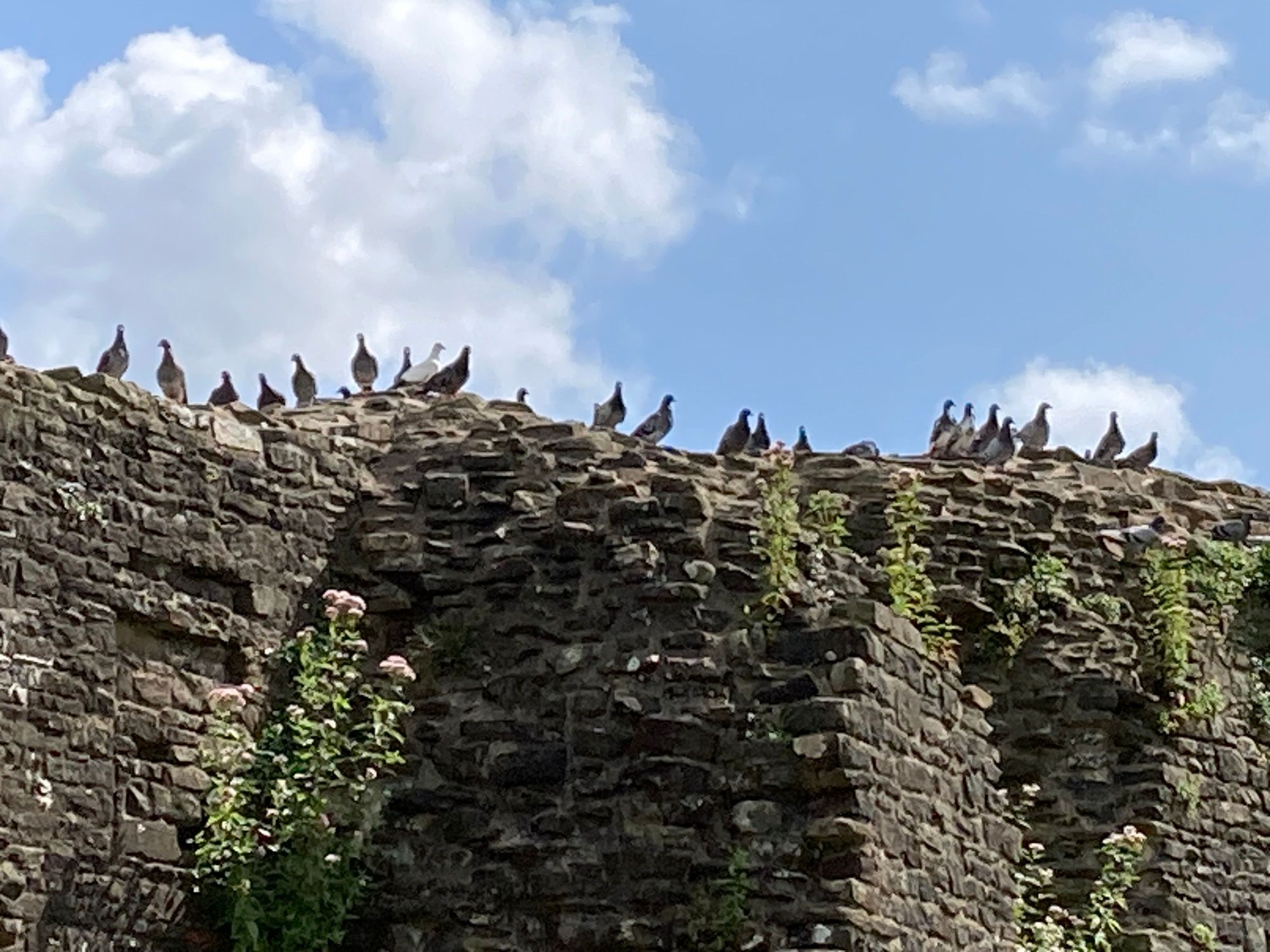 Birds on wall of Caerphilly Castle. Massing for the attack.