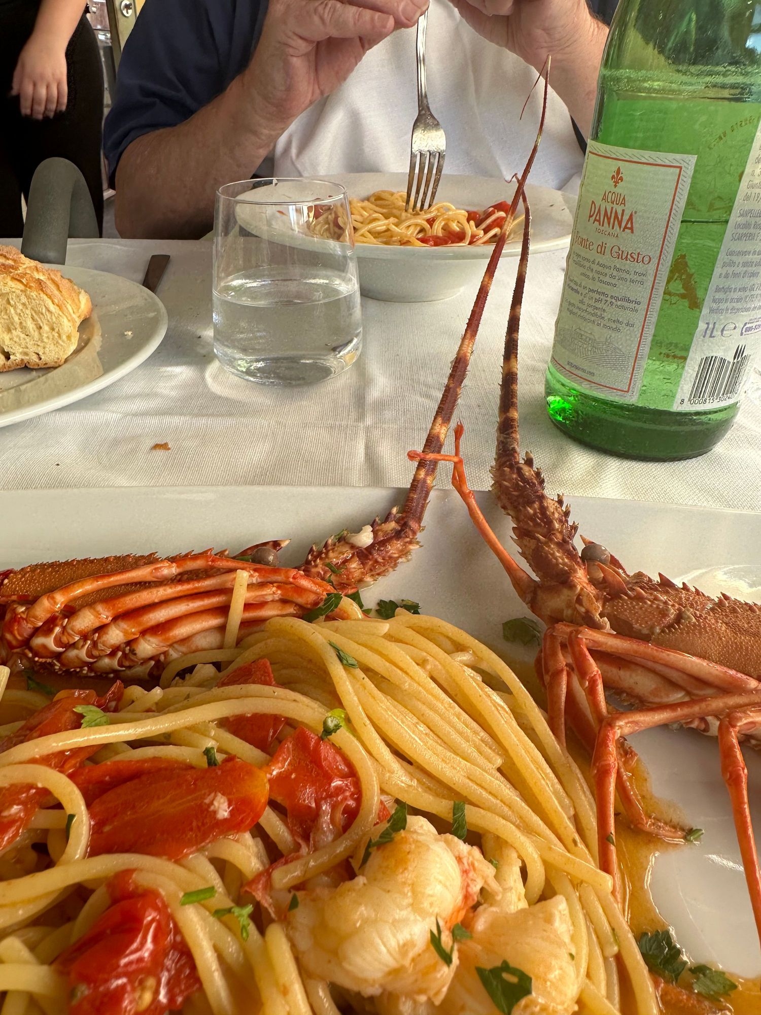 My lobster spaghetti in foreground, with partner's spaghetti with fresh local cherry tomatoes....the most simple and the most incredible dish..I can't figure out how they can make it taste so good. All in the ingredients..the fewer ingredients the better has to be their quality!!