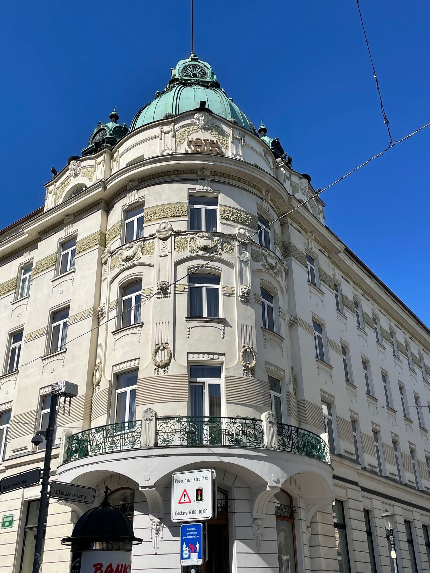 The Hotel Union which is on the main street down from the train station. Luckily the day we arrived it wasn't raining as we walked down the street past this building and the one across the street