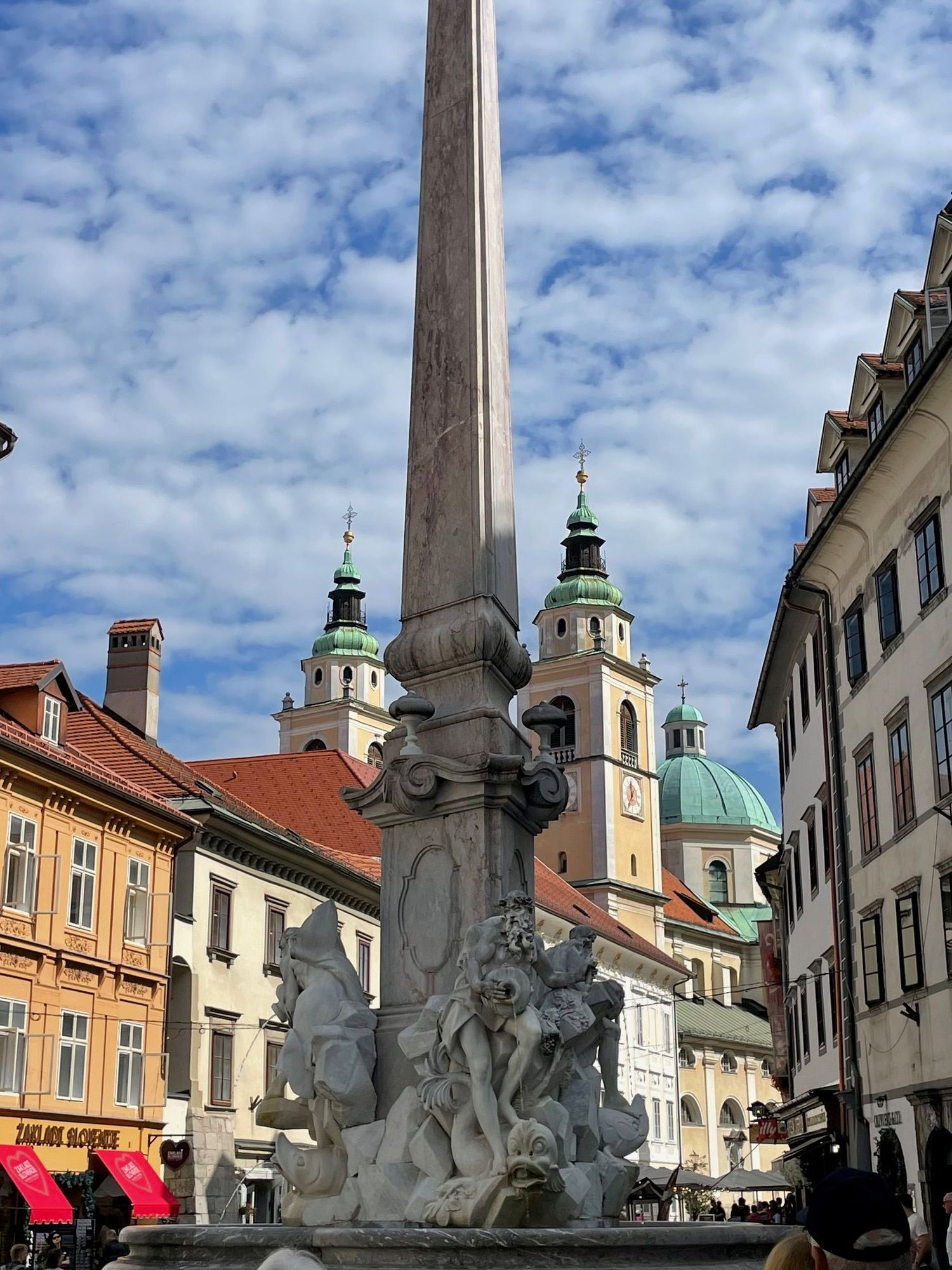 Photo of a square on the back main street in the old town. This statue is in front of the Town Hall. Which dates from the 1400 hundreds. Meanwhile, I remember when the first Krispy Kreme came to Los Angeles in maybe 2010? Not the same.