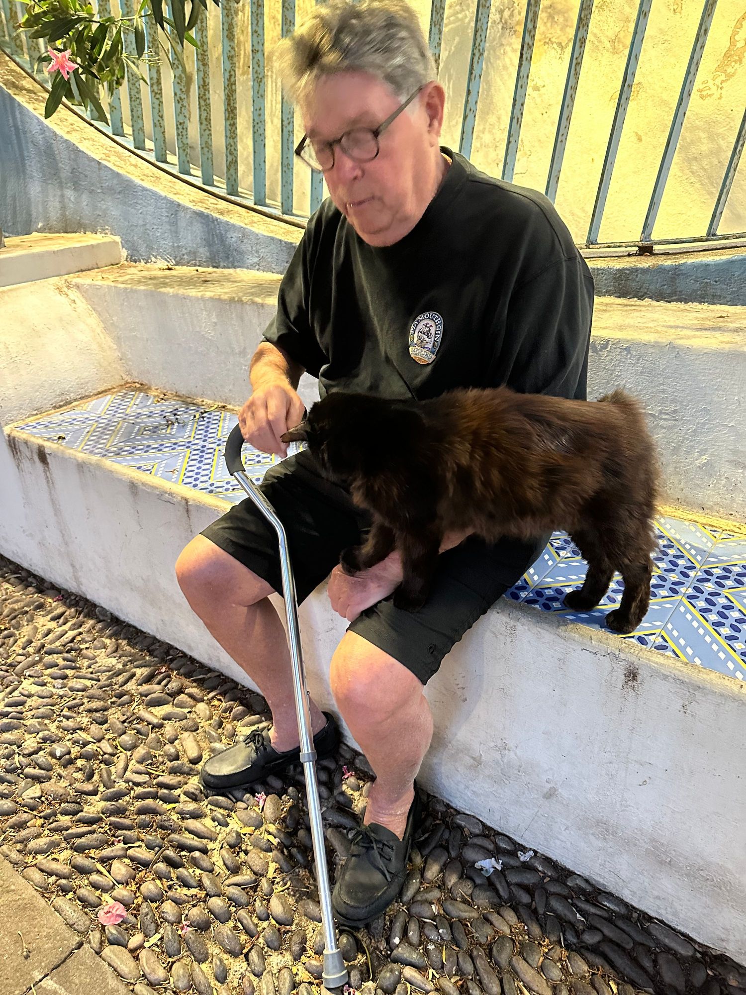Two friends: an Aziani with a cane and a local gatii