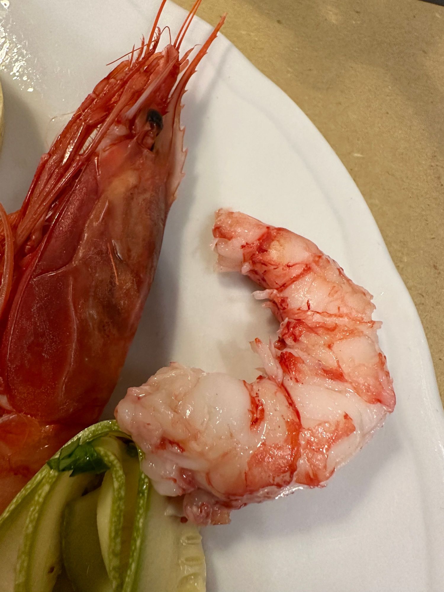 See how red the shrimp bodies are; they were incredibly sweet