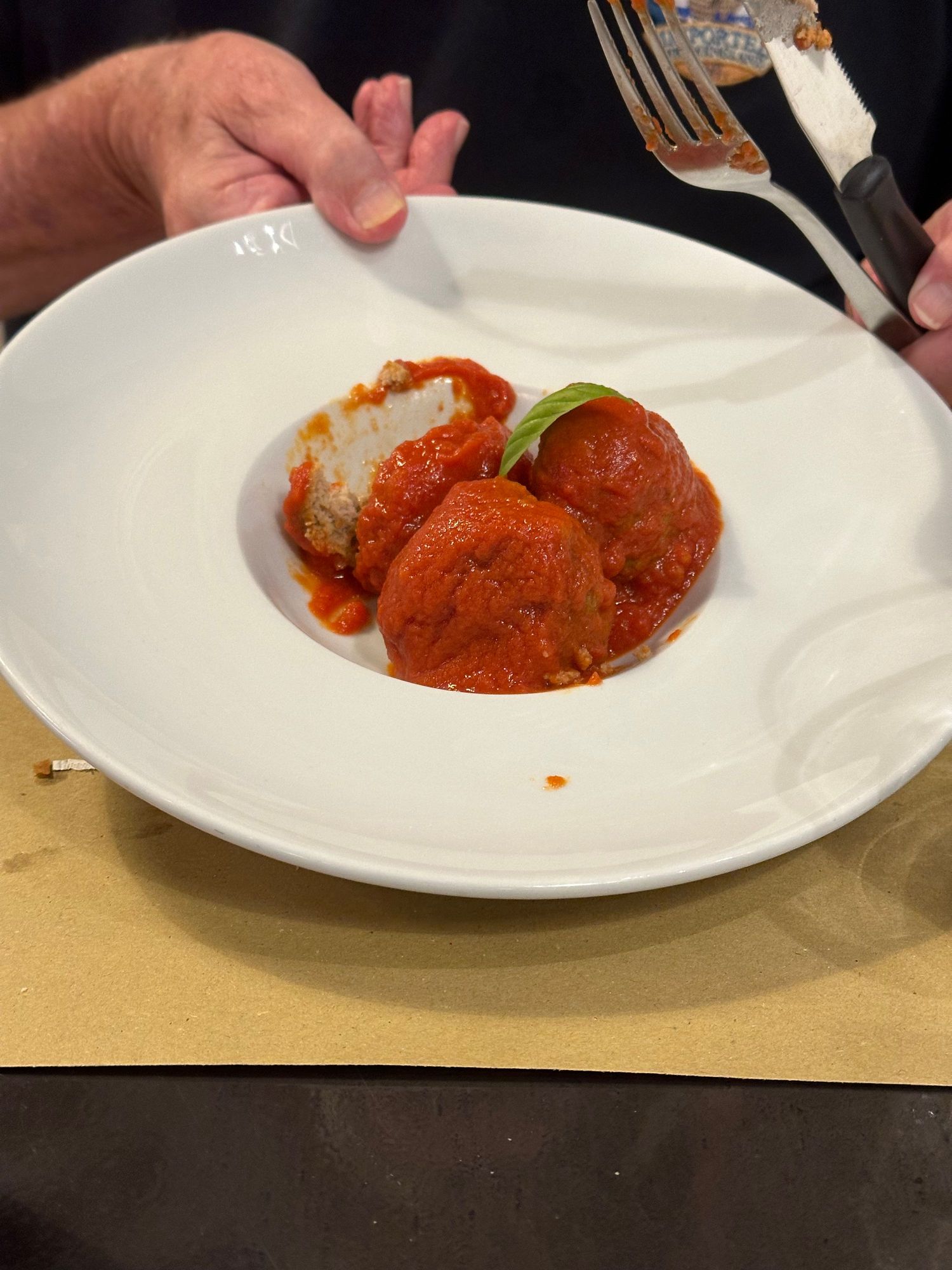 Beef meatballs with tomato sauce; partner said they were just "okay."