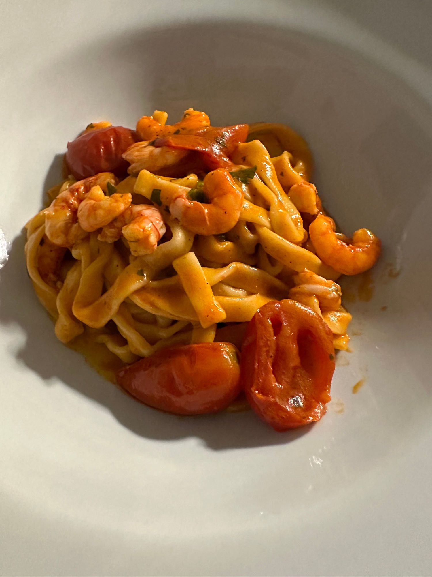 My primi was also delicious: Fresh house-made tagliatelle with tiny fresh red prawns from Salina 20 euro; I could not finish the plate, as usual.