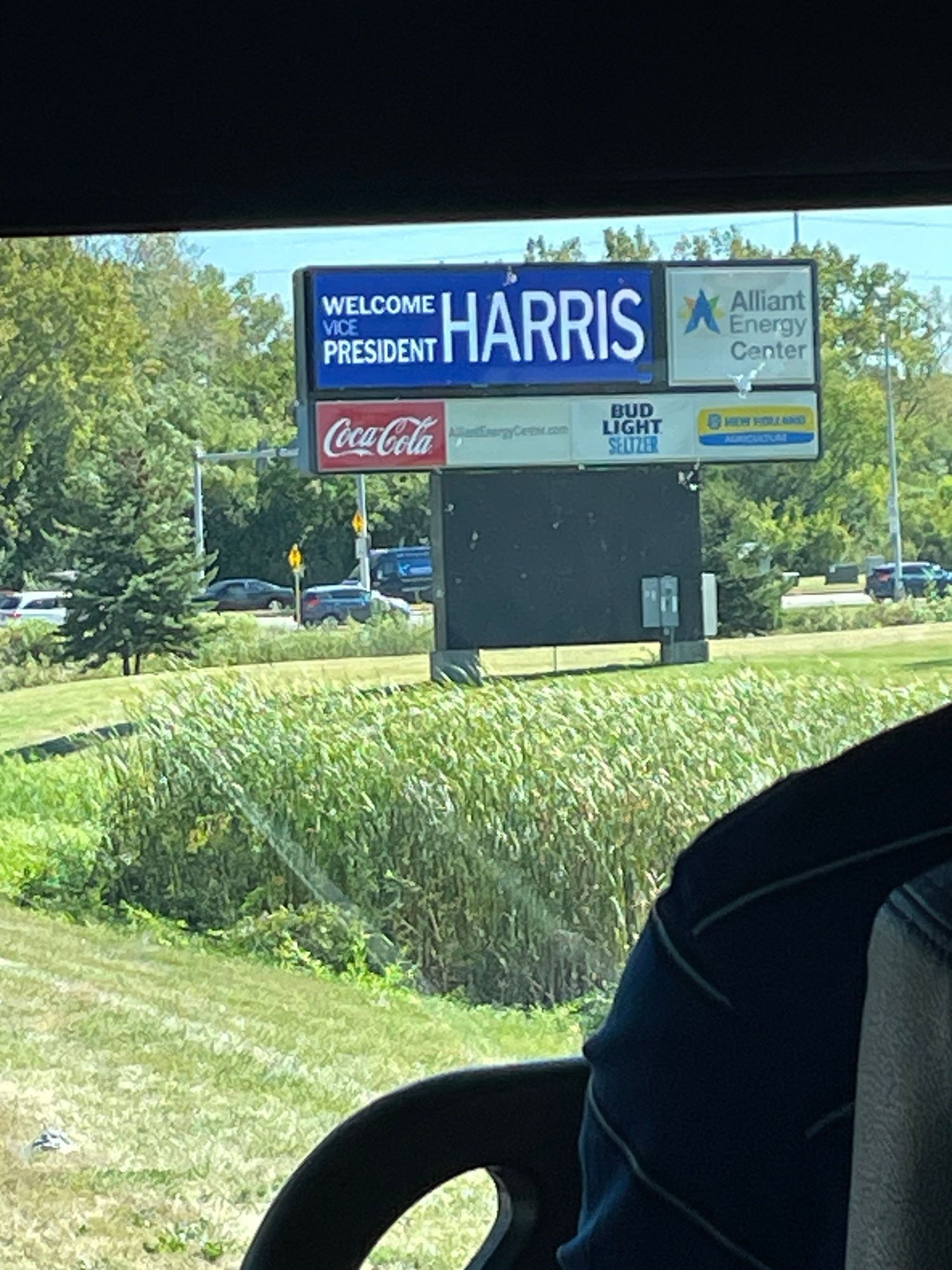 On the shuttle, the marquee that greeted us at the Alliant Center.