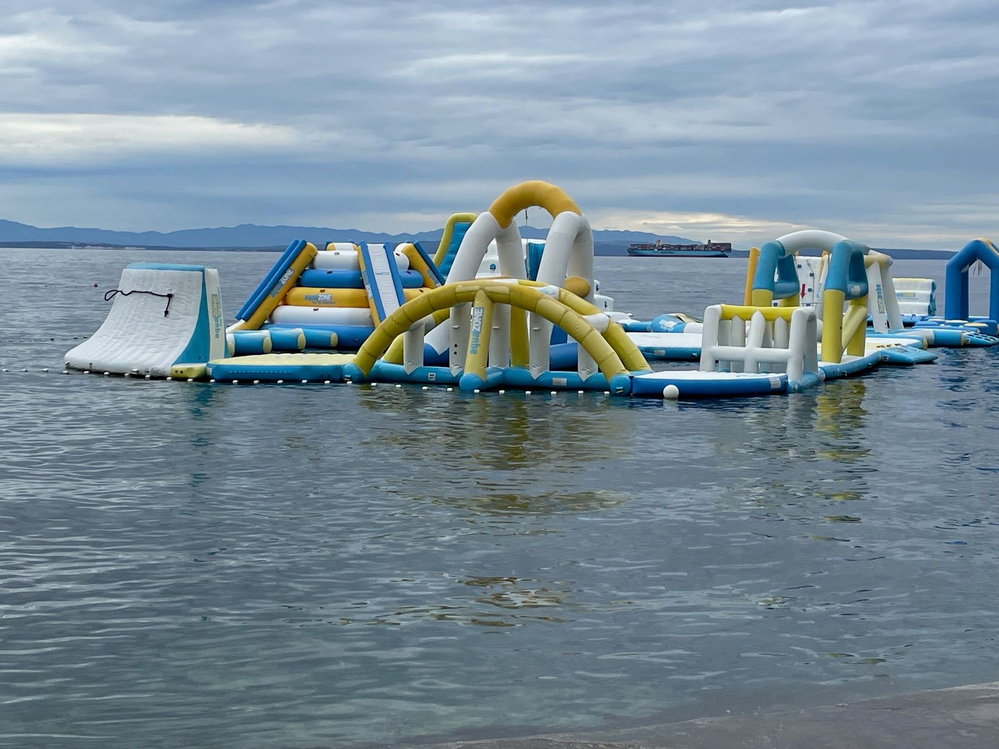 There is a walkway called the Lungomare that runs along the beach or actually ocean, not a lot of beach. There are however many pools along the sea that are filled with the water from the sea. There are ladders off the concrete so people can jump in and swim. We saw this area for children that really looked fun.