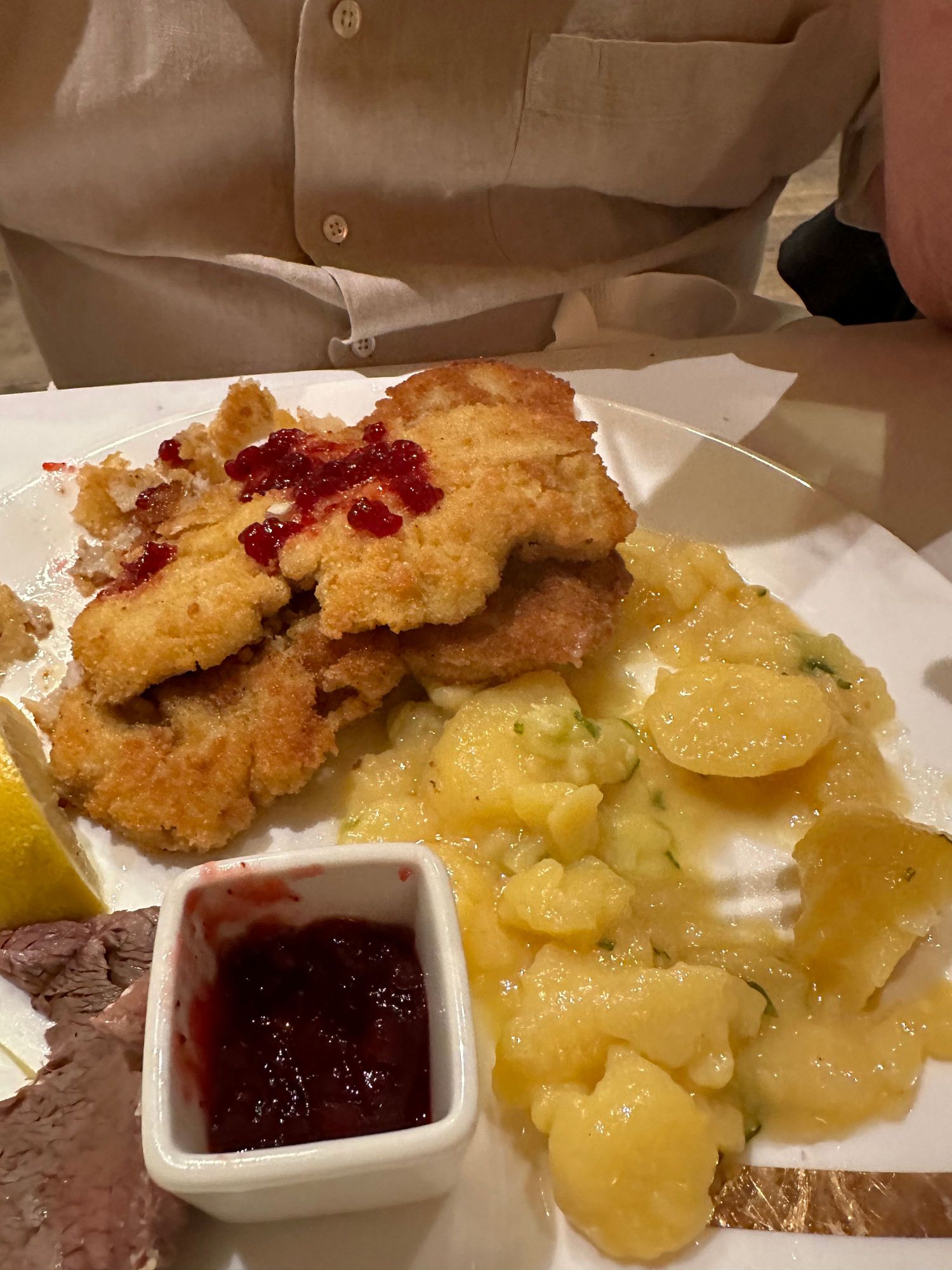 Partner loved his wienershcnitzel note that this is Vienna style, with veal. Munich style is made with pork.