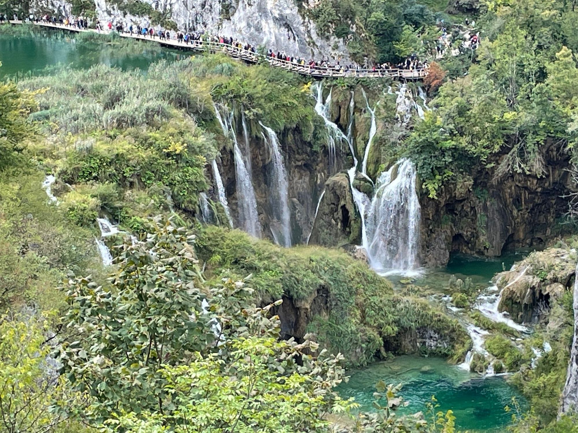 Almost the same view of Veliki Slap but cropped so you can see the line of people heading to the bottom of the falls. The trails are fairly narrow and there are lines of people paying no attention to anything but themselves, stopping in the middle, holding everyone up. Endless selfies, the love couples who can't go single file because it will destroy their young love. Tina said it was alright to elbow people, in fact it might even be a life learning experience for them.