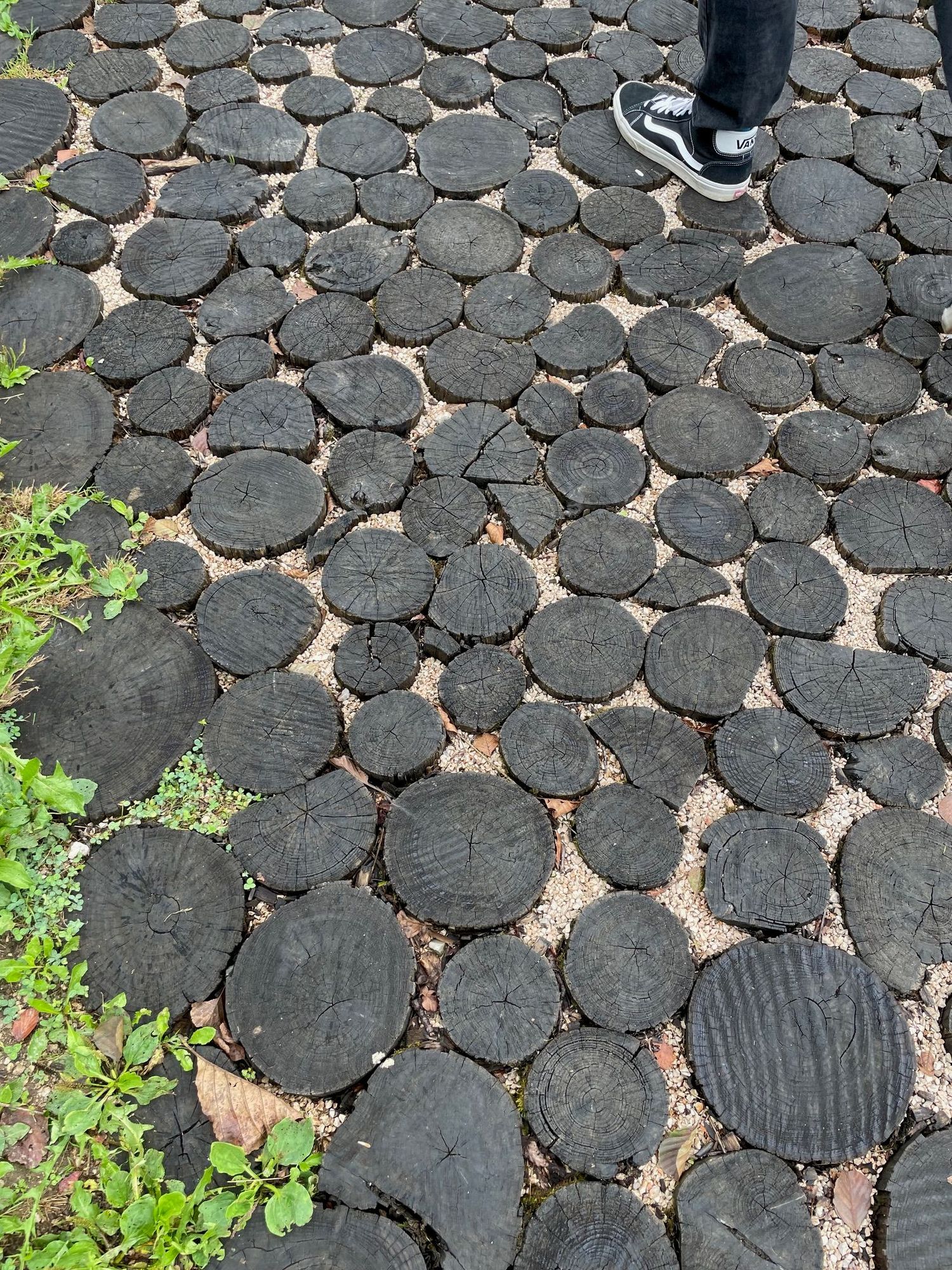 This is a picture of a walk way made from pieces of wood. I thought it made a good picture.