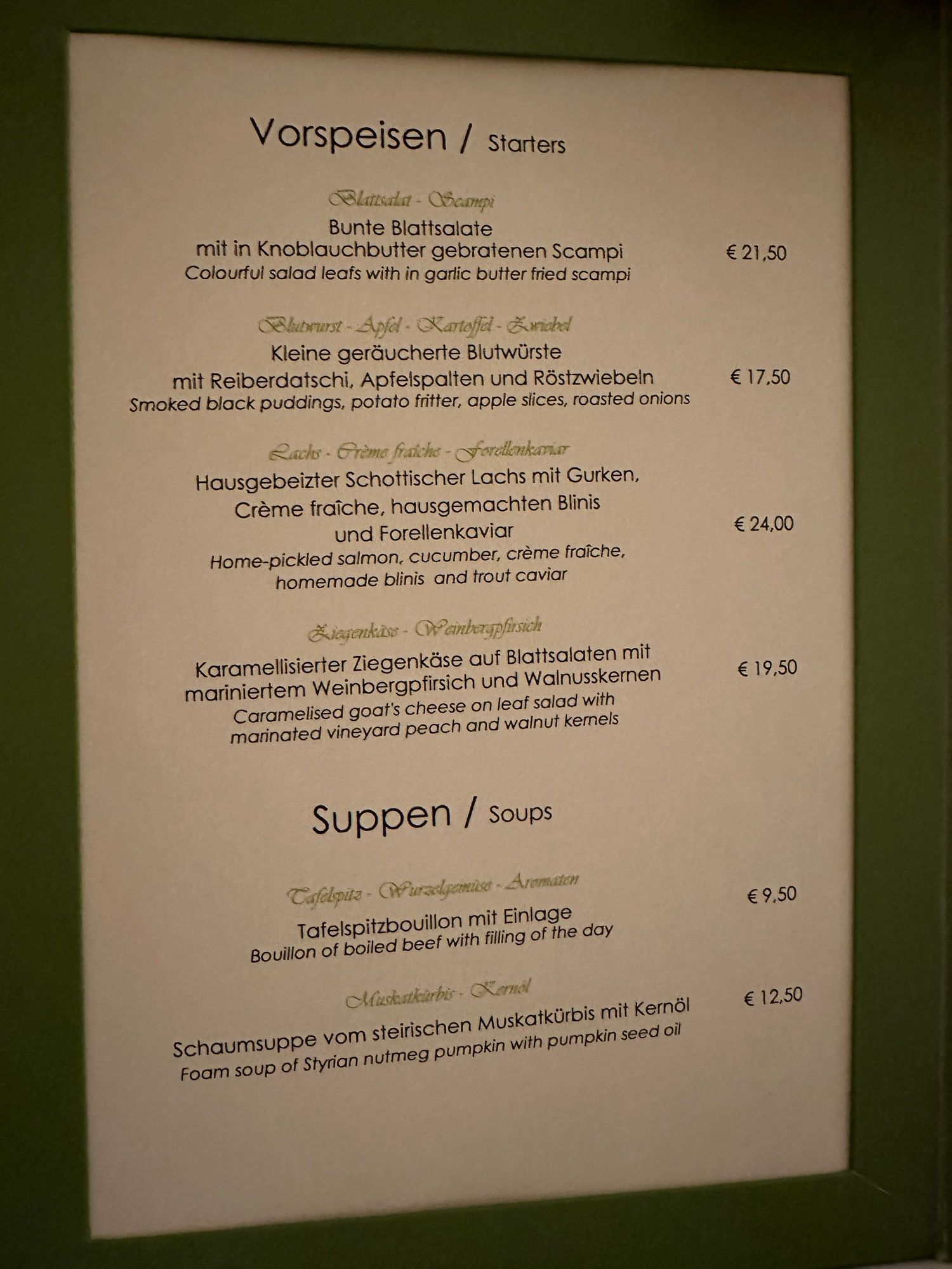 FREISINGER HOF..PORTION OF MENU