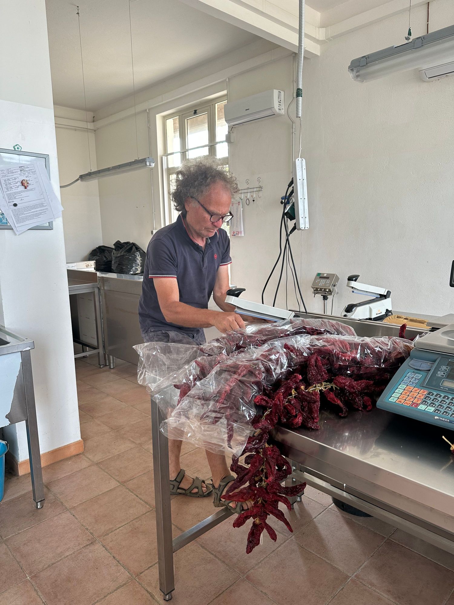 Second step of many, to prepare peppers for packing..partner is having fits by then as it is very HOT and he cares very little about Senise peppers!!