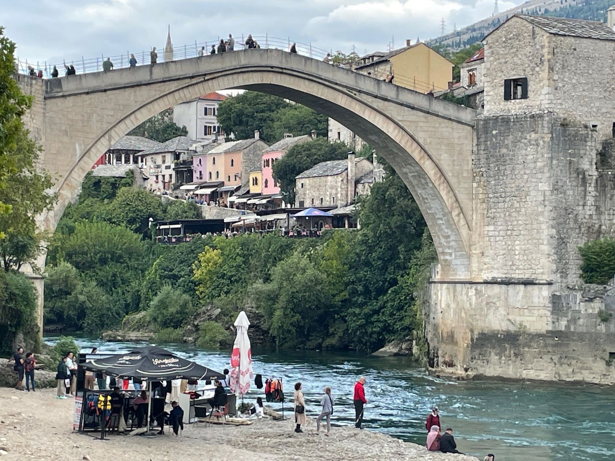 Stari Most from the beach side below. They give boat rides up the river from this beach