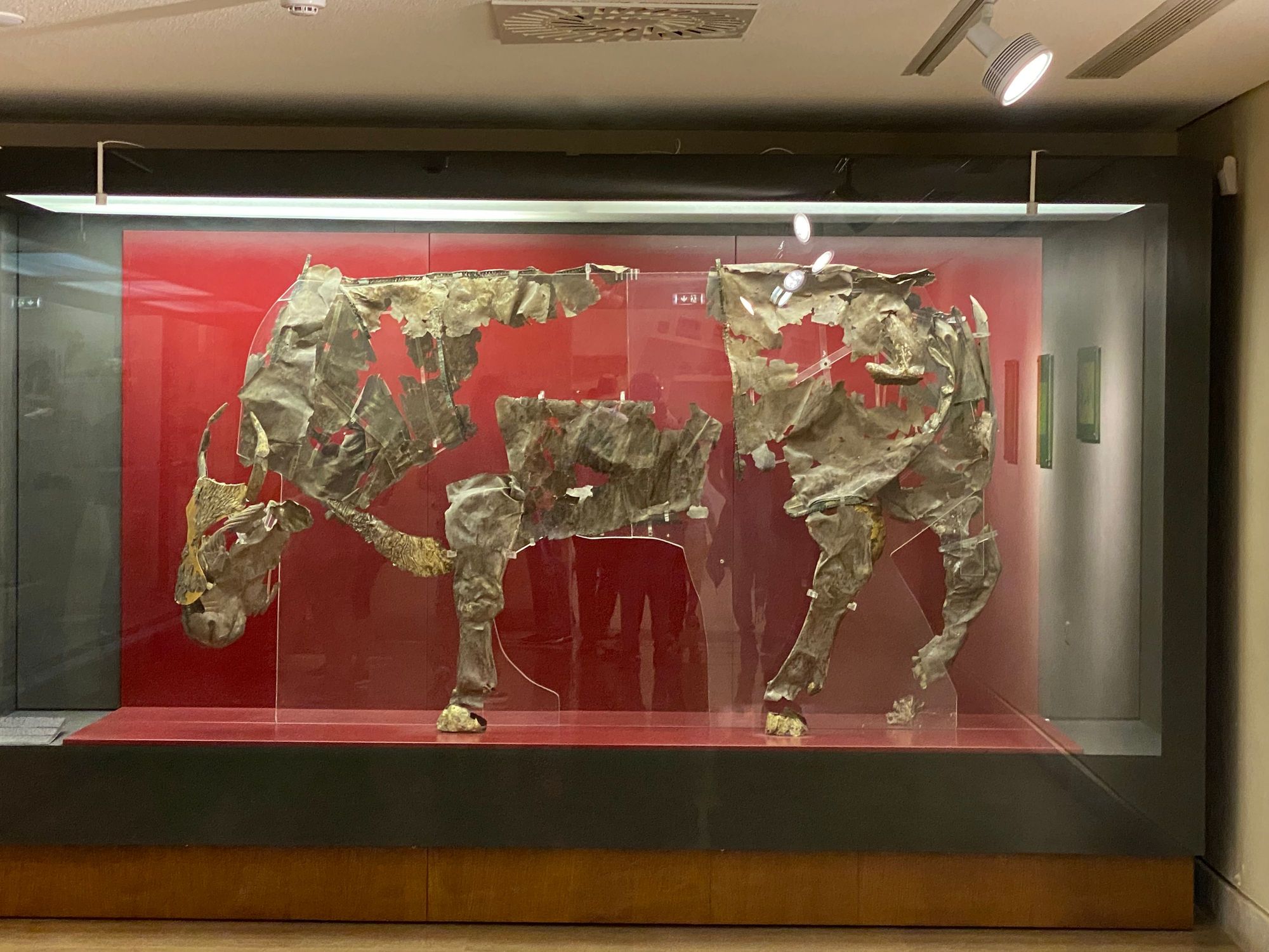 The Silver Bull of Delphi is the first large-scale statue made all from forged metal. This was found crumpled in a depository of the Delphic Sanctuary. k