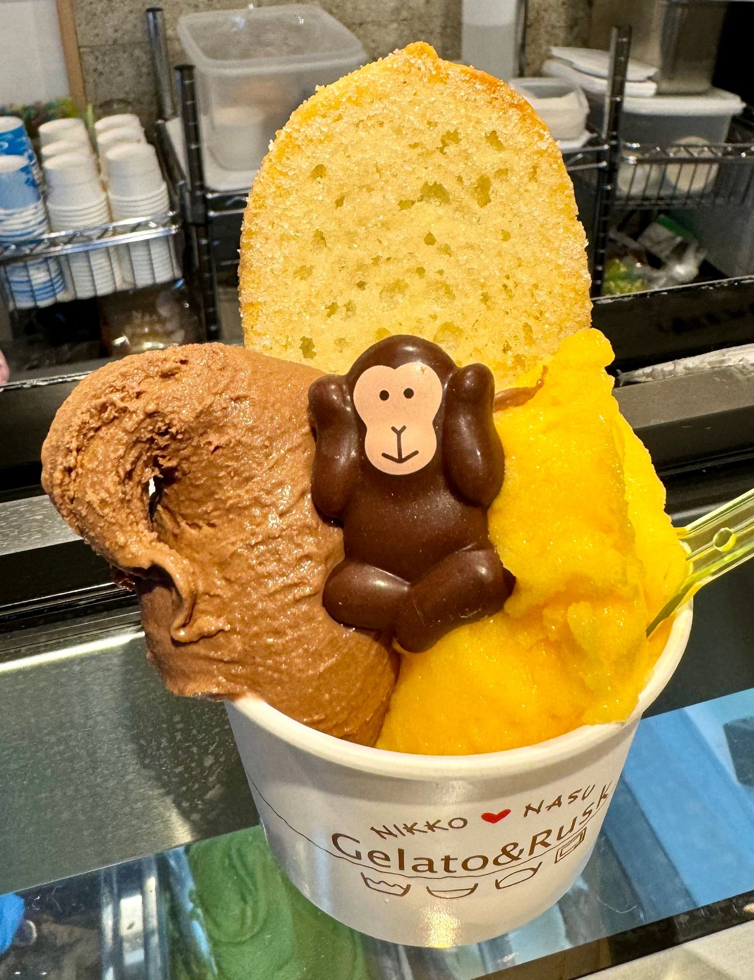 Gelato for dessert. Orange sorbet and chocolate. Delish!