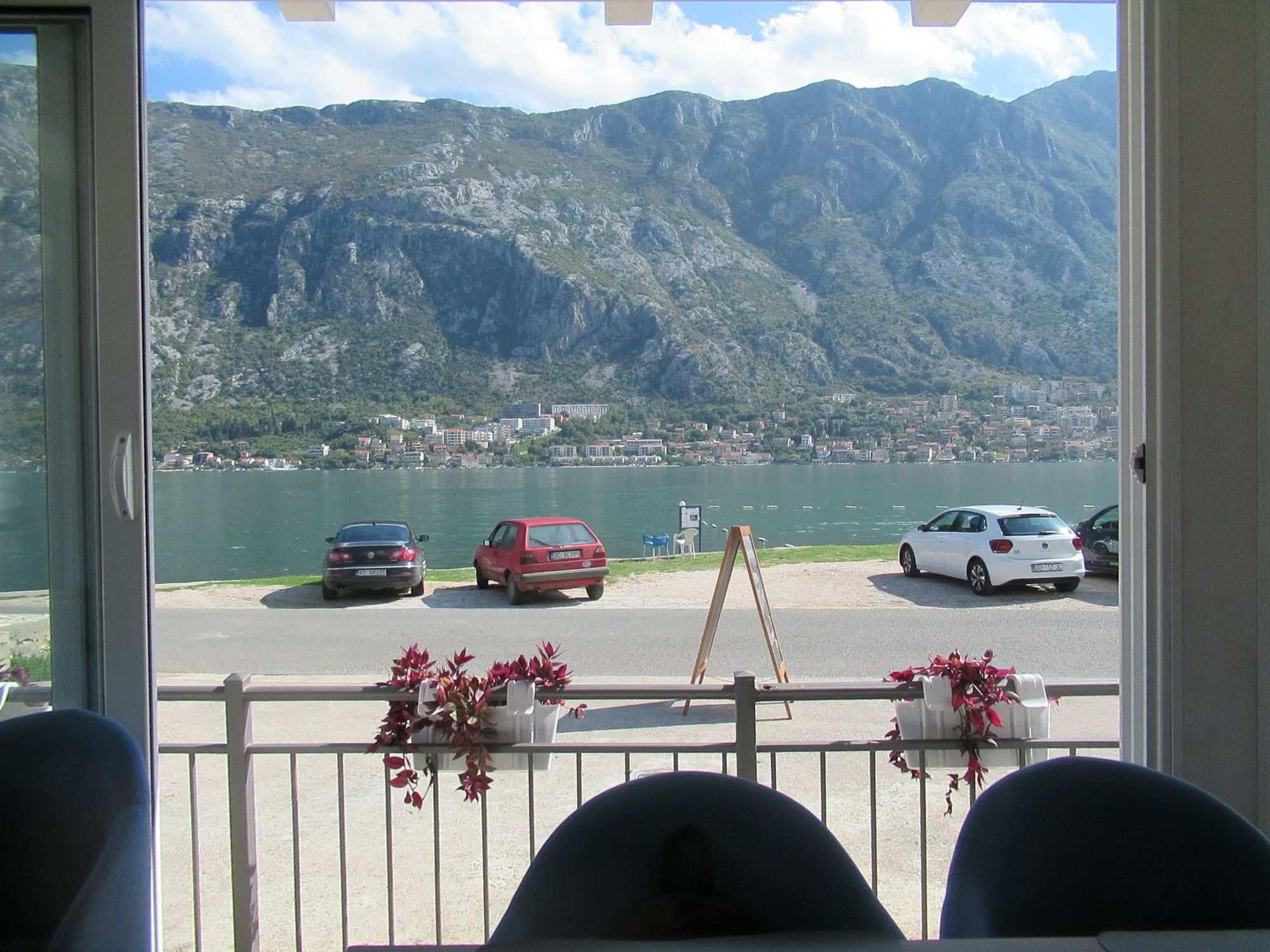 Stopped for a coffee and you can see how narrow it is across the Kotor Bay at some spots. Imagine it filled with Cruise ships, it can be.