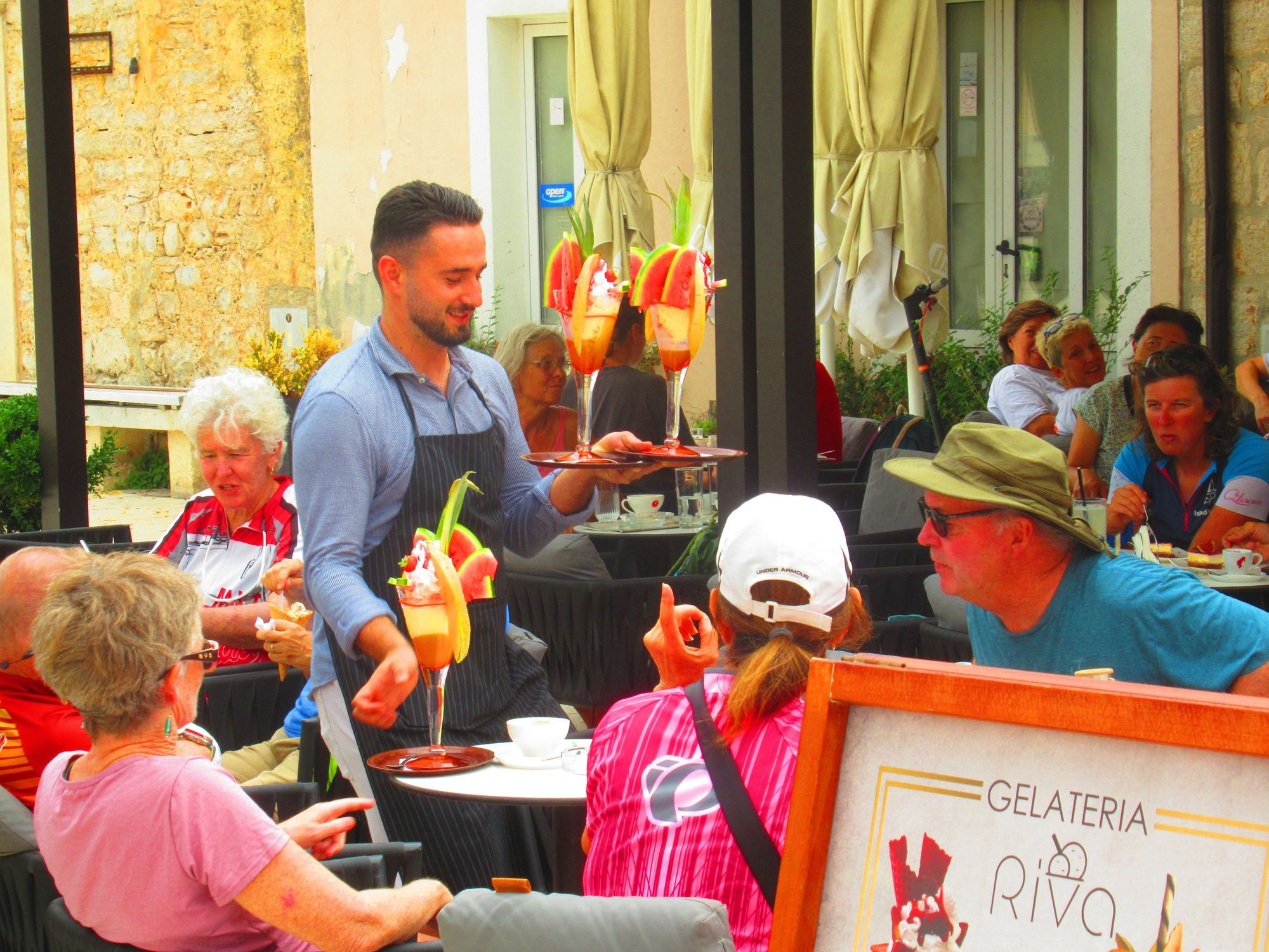 This is a thing, a number of the restaurants had these giant fruit glasses. We didn't know this but this area is extremely popular with bikers. We must have seen 4 or 5 groups.