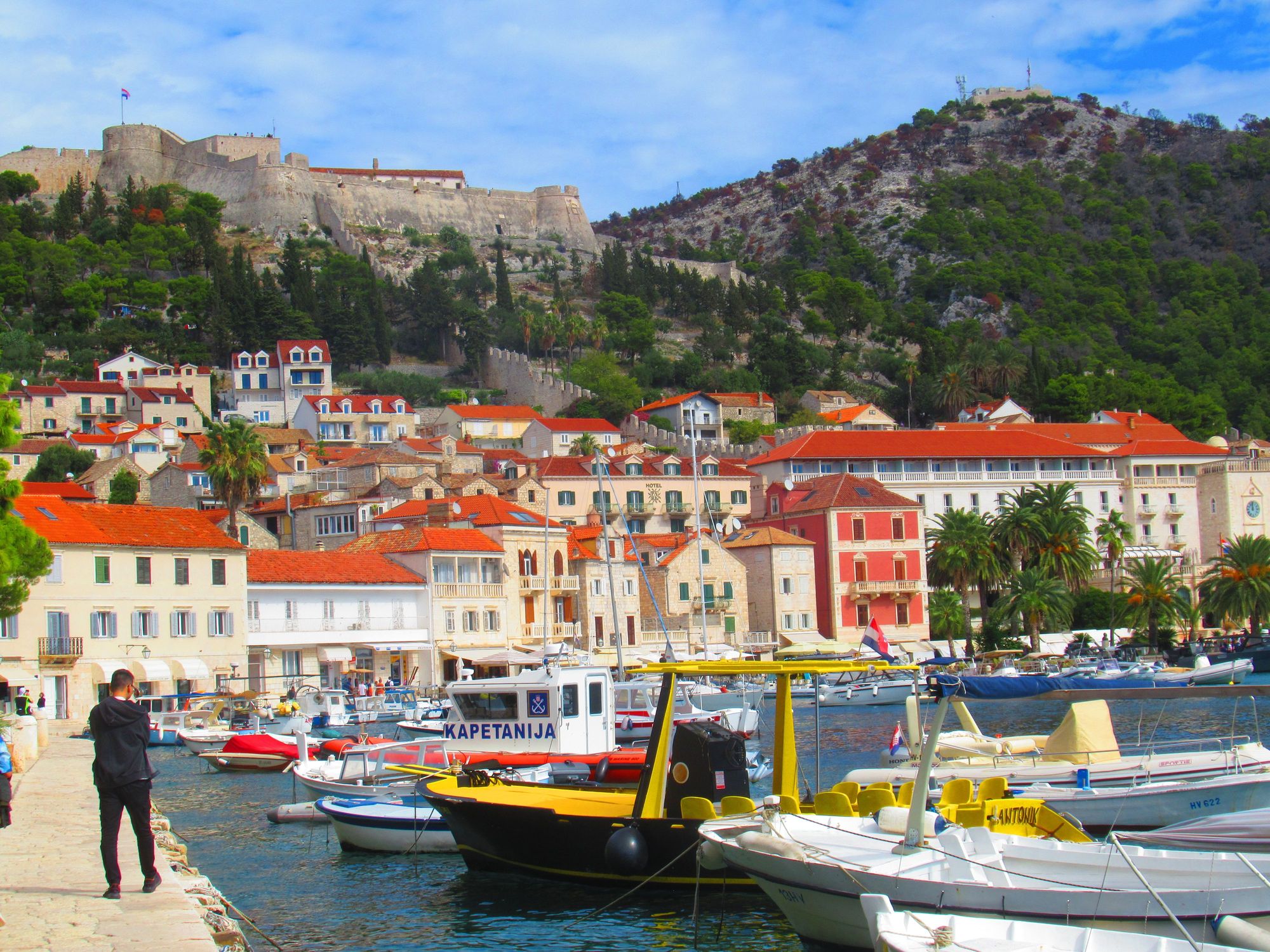 Further down the west side of the harbor looking back at town and fortress