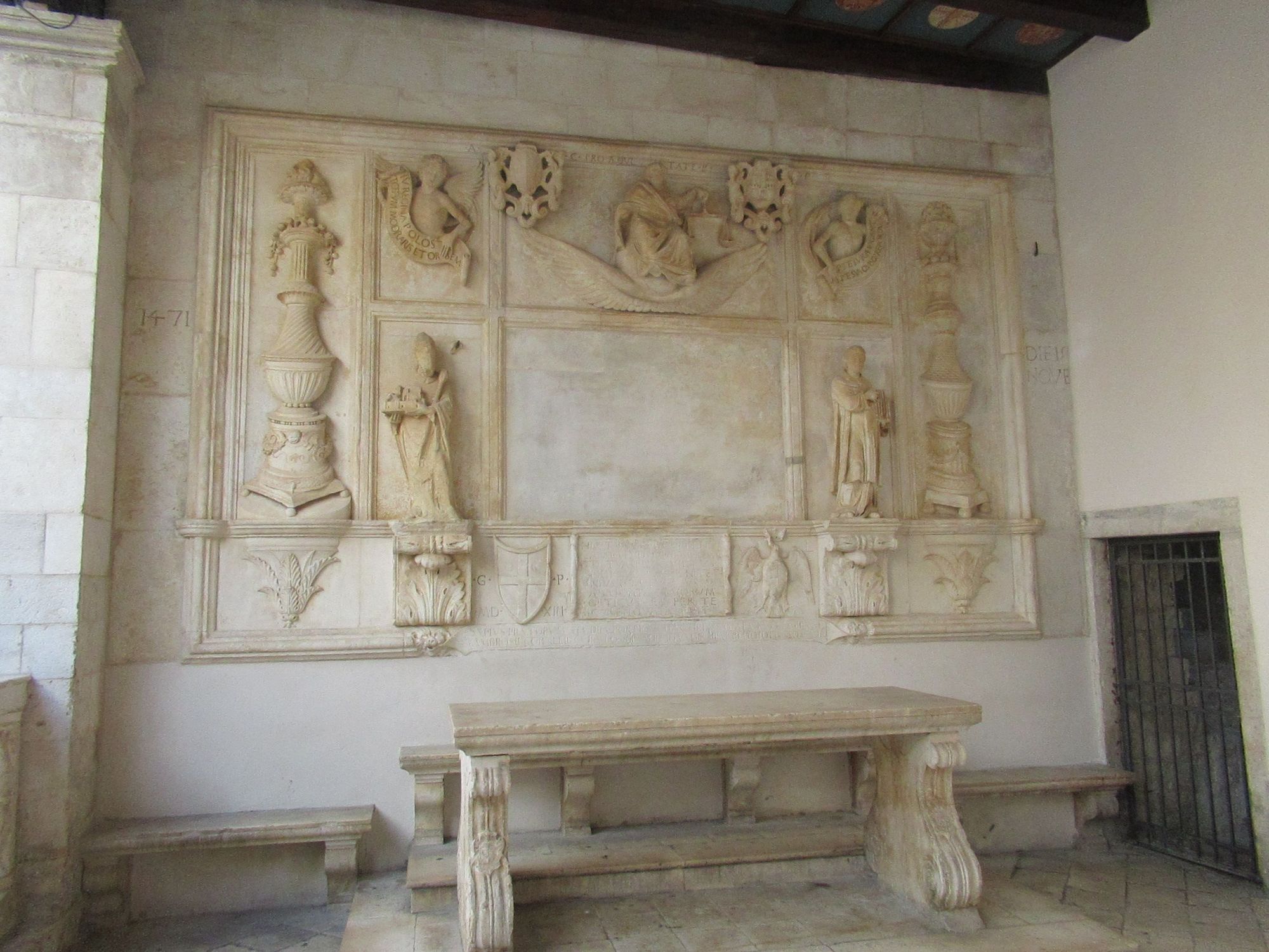 One of our first looks in Trogir, this is the Loggia. There used to be a winged Venetian lion in the middle square but they took it out in 1932. Not sure why that date, anyone know?