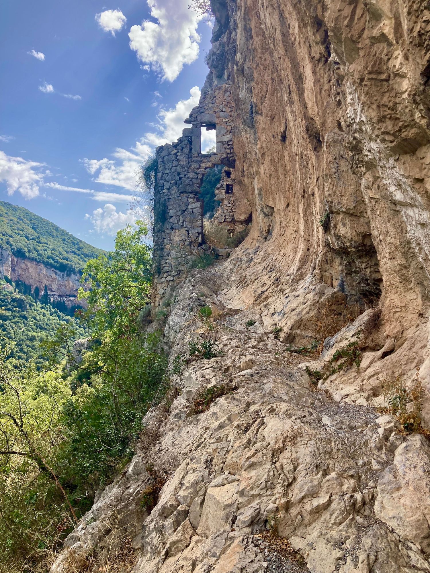 The ruins of Old Philosophou, founded in AD960, a few frescos still visible in the old church