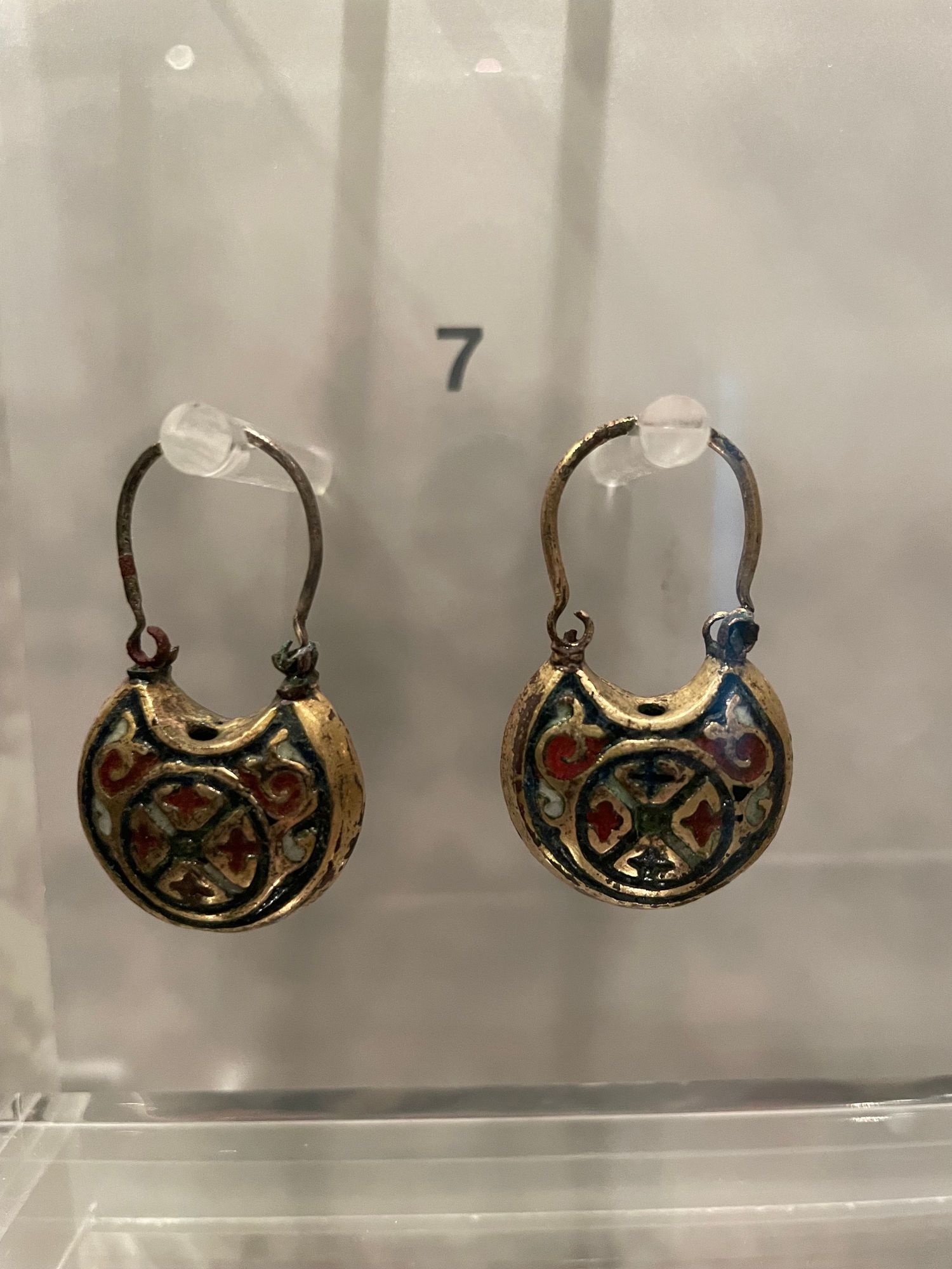 These earrings in the museum show that styles haven’t changed much since the 14th century