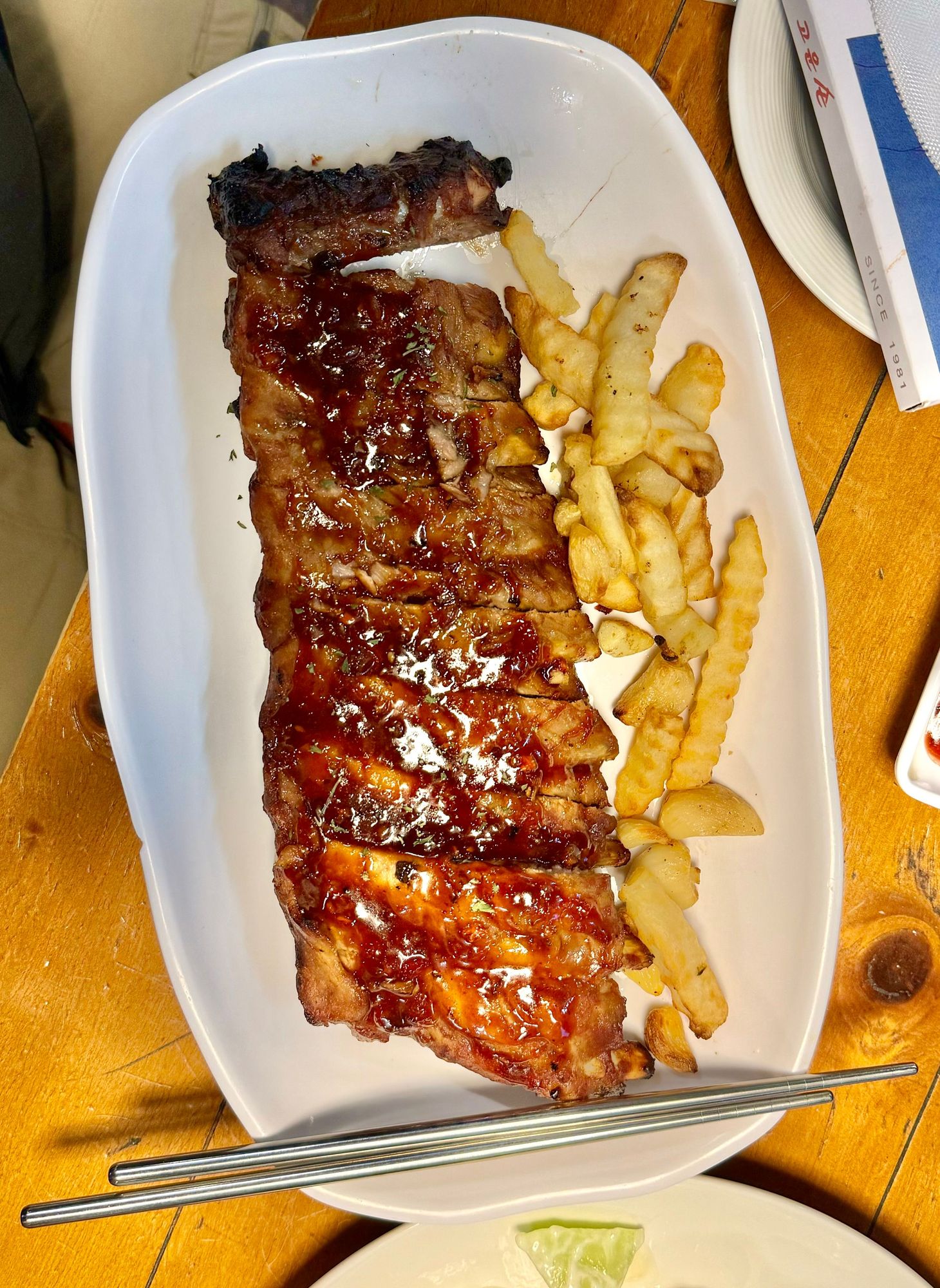 My last dinner in Korea was appropriately barbecue pork ribs, Korean style! Delicious! And we only ate here because the sushi restaurant I had picked specifically for Joyce was fully booked. (only three tables). So I lucked out!