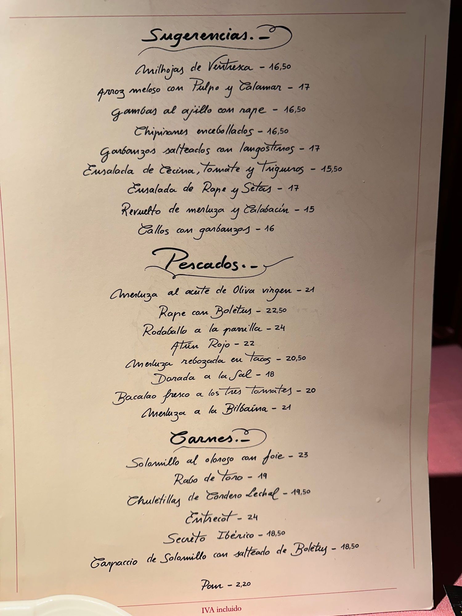 LA CASTELA carta; even where not noted, many dishes can be ordered in half portions. I wish I had done this the night!!