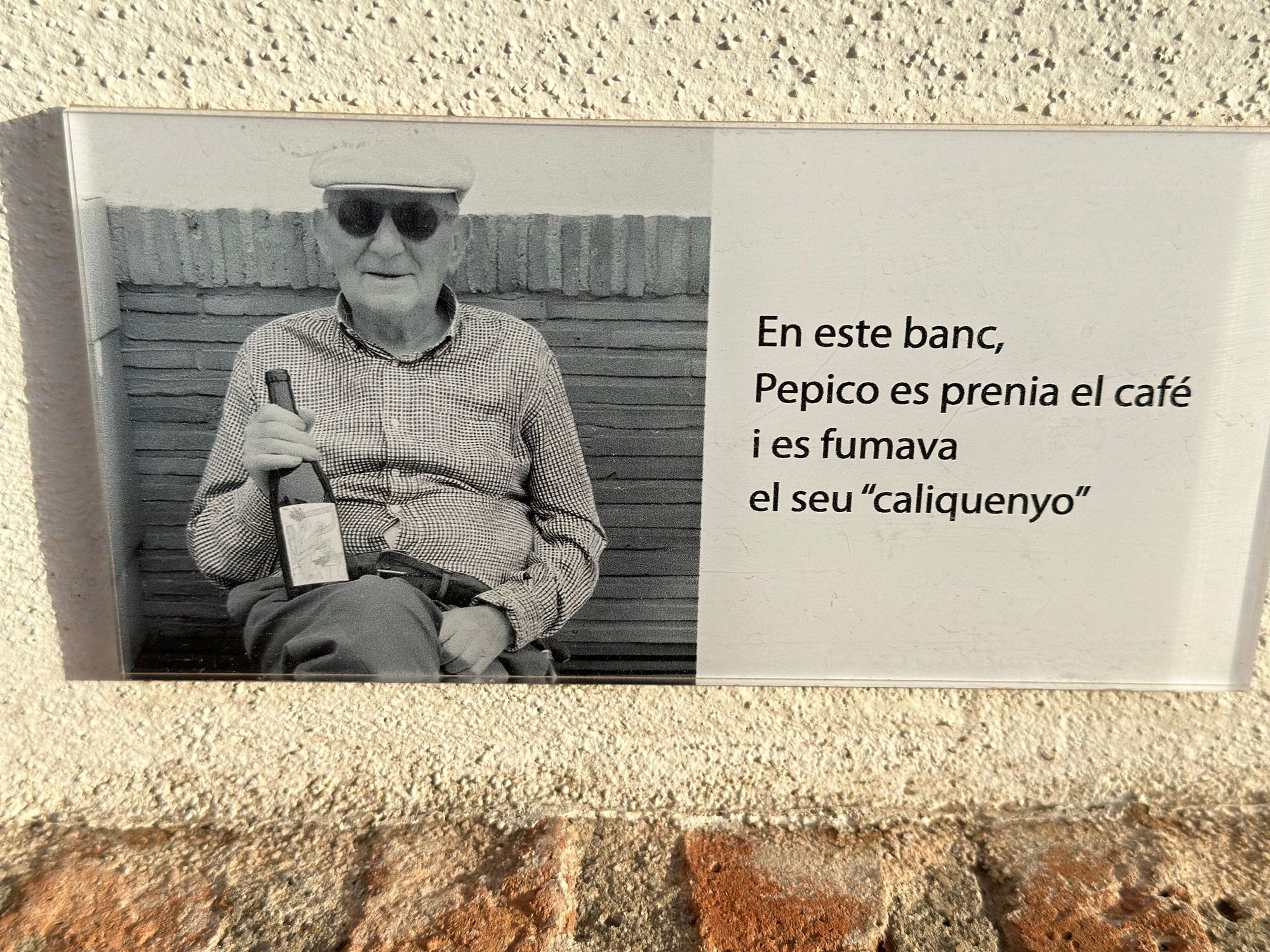 Photo of the late Pepico on the outdoor bench where he would rest, imbibe, and smoke