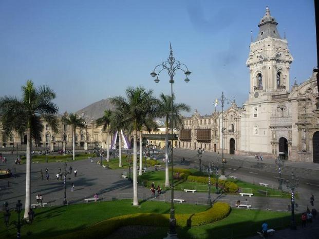 A section of the grand Plaza Mayor, with the Catherdral at far right, and the Archbishop’s palace to the left of it.