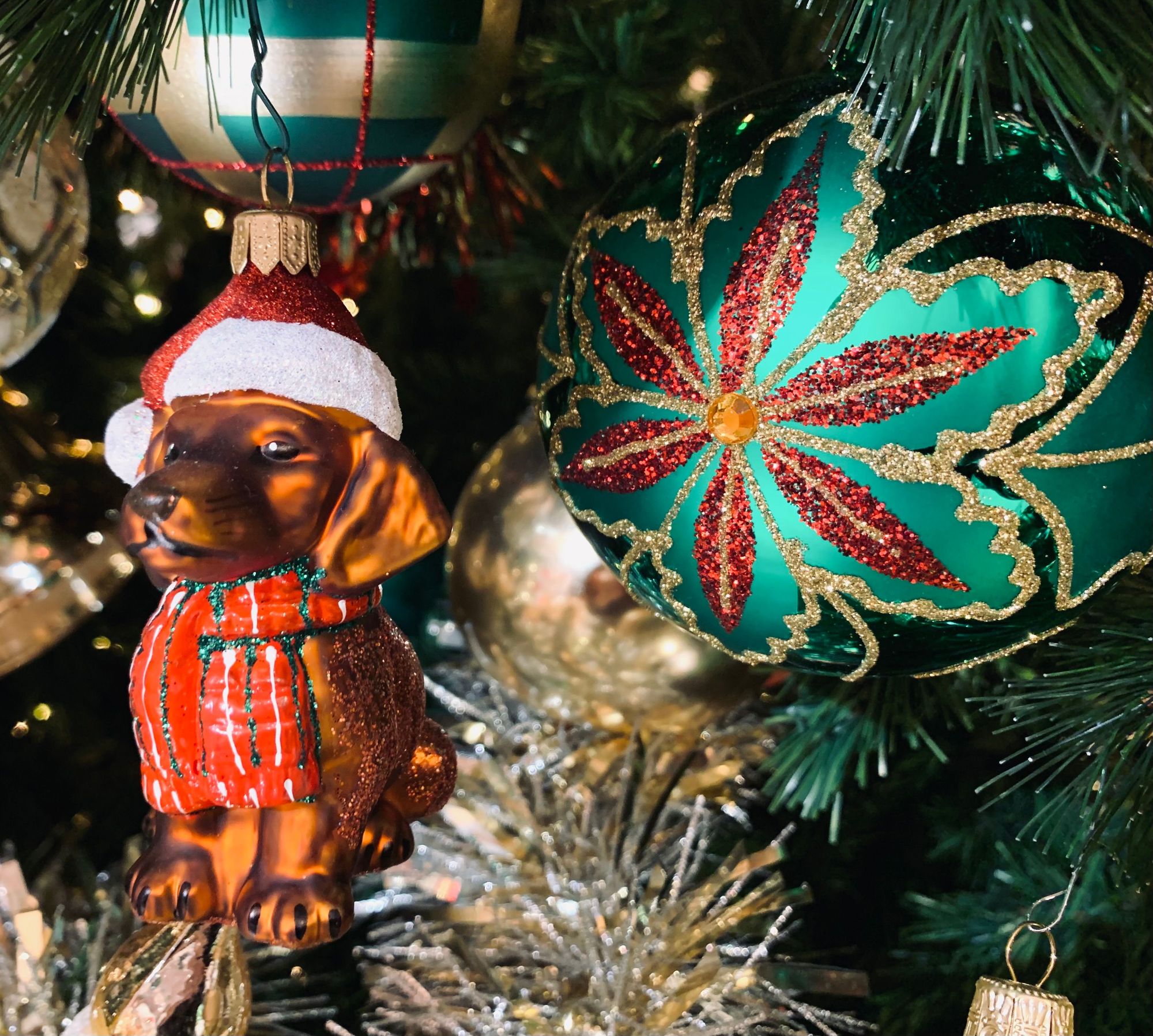 Dog-themed ornaments were very popular in the Christmas department at Le Bon Marché, esp labs, goldens, corgis, poodles, pugs and dachshunds. Alas, no English cocker spaniel ornaments. :-( The store's window displays this year were amusing but odd, sort of an Eiffel Tower under the Sea theme, with dancing squids and other sea creatures surrounding the Tower.
