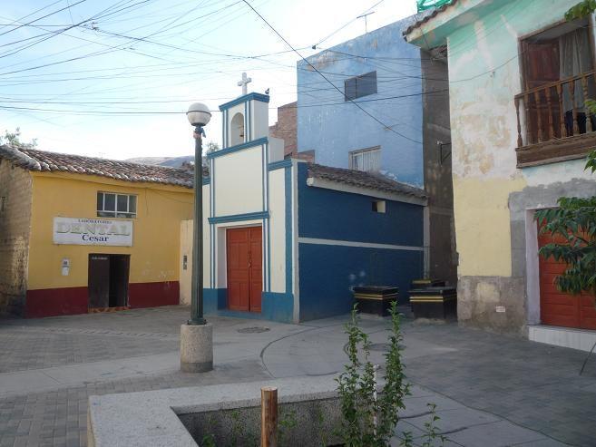 A tiny church. Actually, the Chapel (Capilla) of the Señor, or Lord, of Pampa Cruz. I should have looked more closely for an informative plaque, for I would later find that the same internet that will give me ten thousand pages on Elvis in a fraction of a second, had practically nothing to offer on the date of this church. Eventually I read in the Spanish version of Wikipedia that it is “contemporary with the Temple of San Cristóbal” (preceding picture).