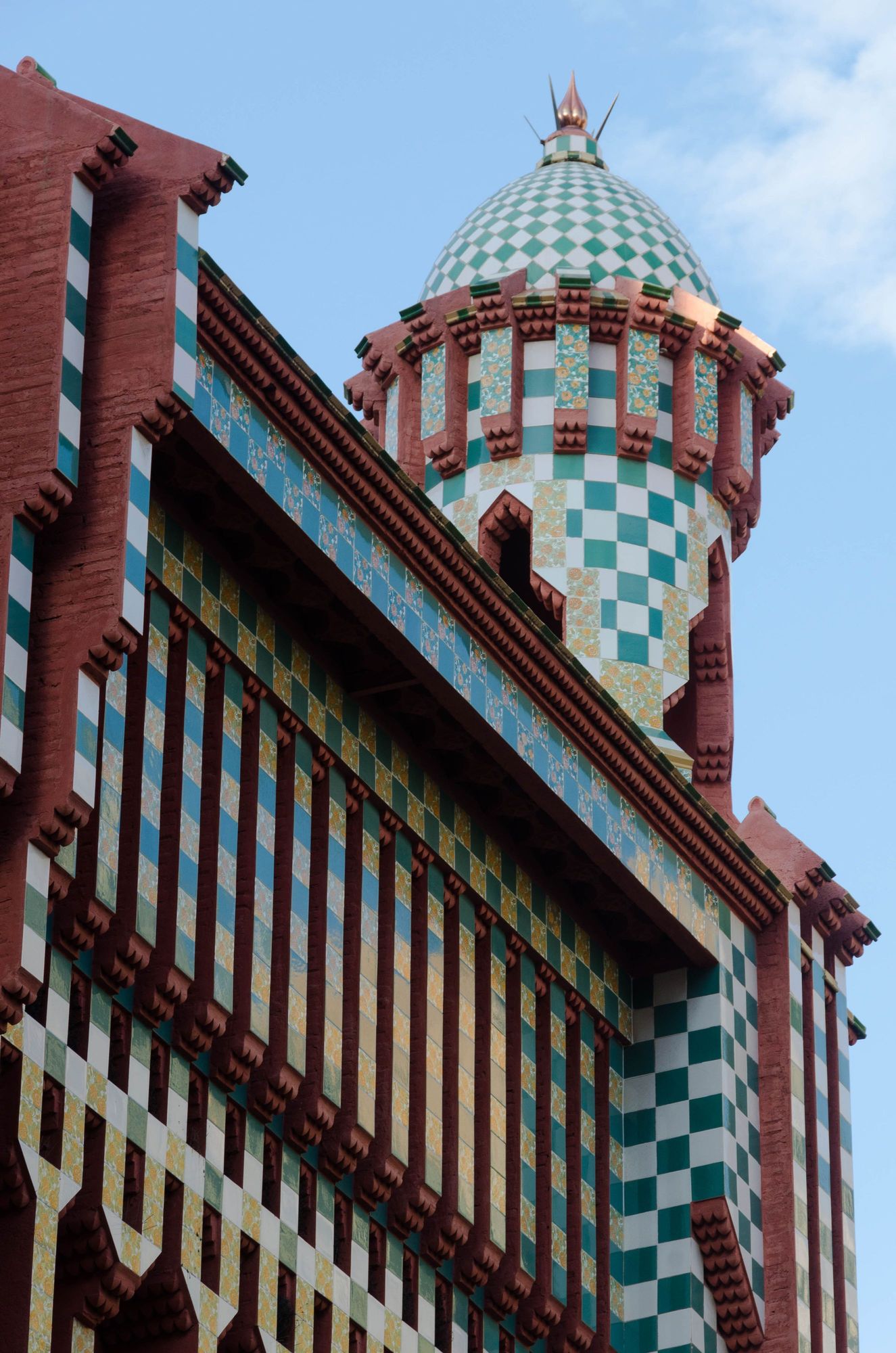 Casa Vicens was all about Gaudi's initial attempt at what became the 'Modernista' movement. In his imagination, that meant flamboyant mosaics and custom fountains. The various doors, windows, mirrors, art and plants were all special in their appearance. This was no place for 'plain.' Here, the ornate tower. There were good rooftop views.