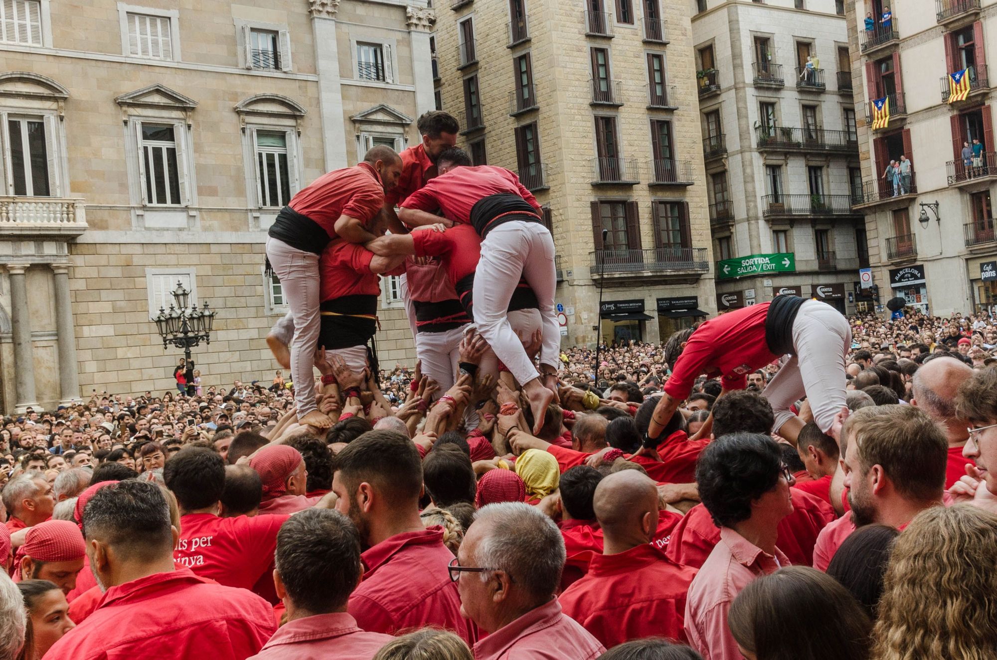 The middle lifters are known as 'manilles'. Spotters also took their places to watch for signs of falls and collapse. It happens.