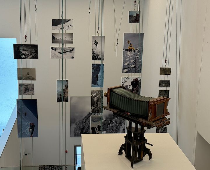 This set of photos mounted on ropes all covers images of rope-climbing teams.