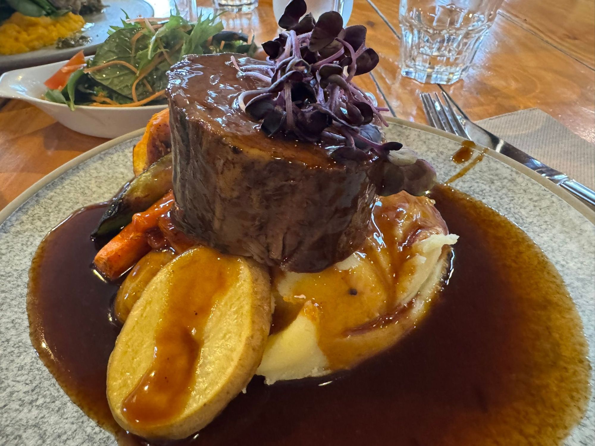 My beef dinner which I enjoyed very much at the Green Parrot Bar and Restaurant in Methven.