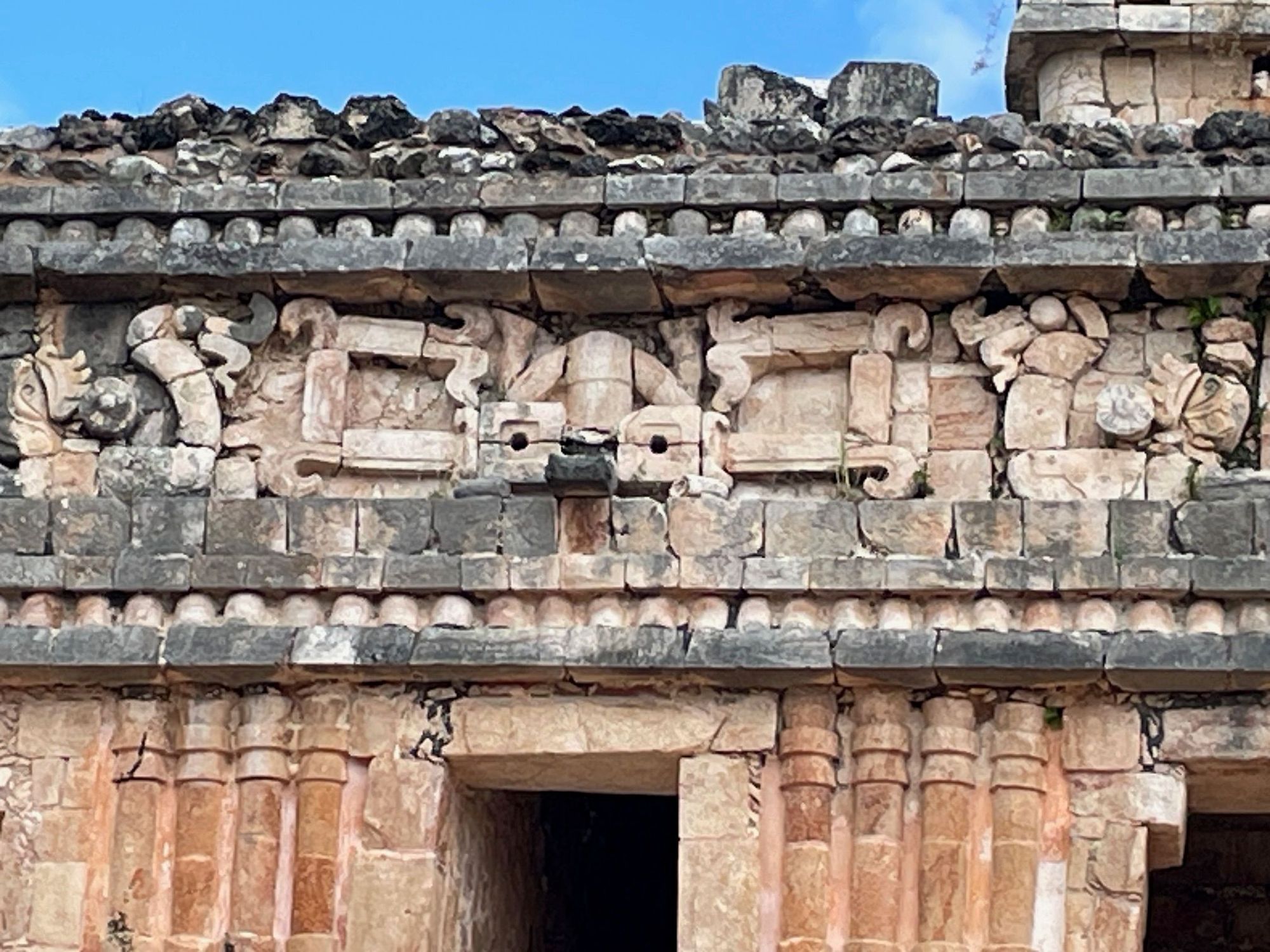 Above the door way is an upside down figure you can see his "frog" legs. I read this is a descending god