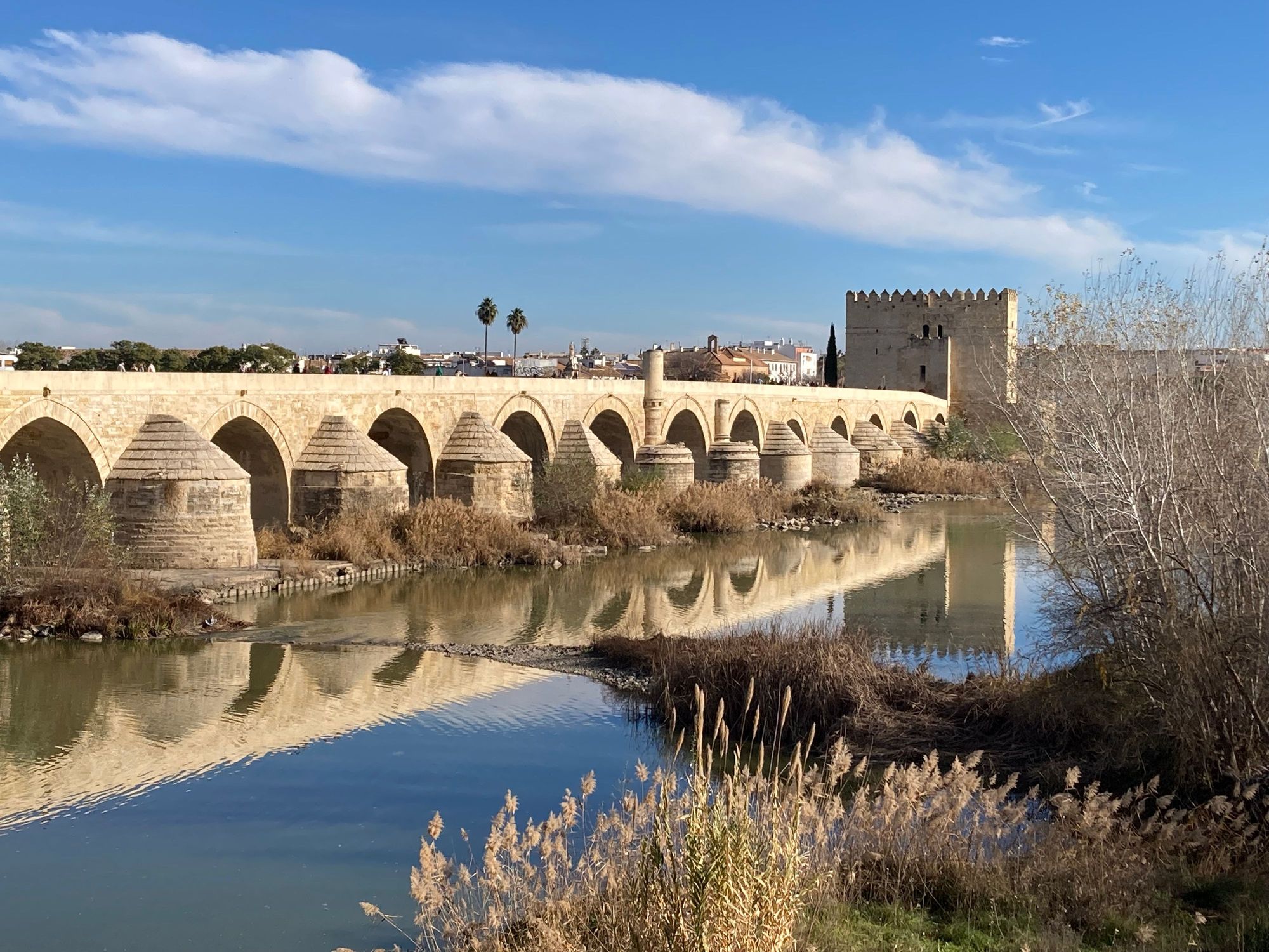 Roman bridge across river in cordoba