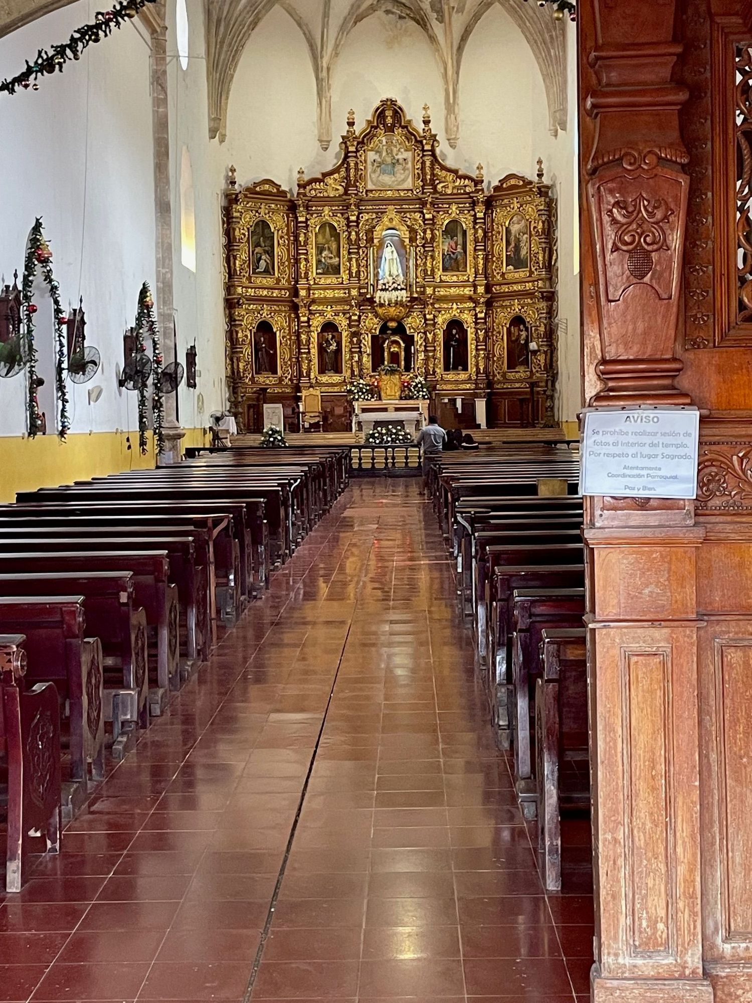 Inside of the church. This altar is not that old. The original burned in 1790 something. This one was done in the 1940's.
