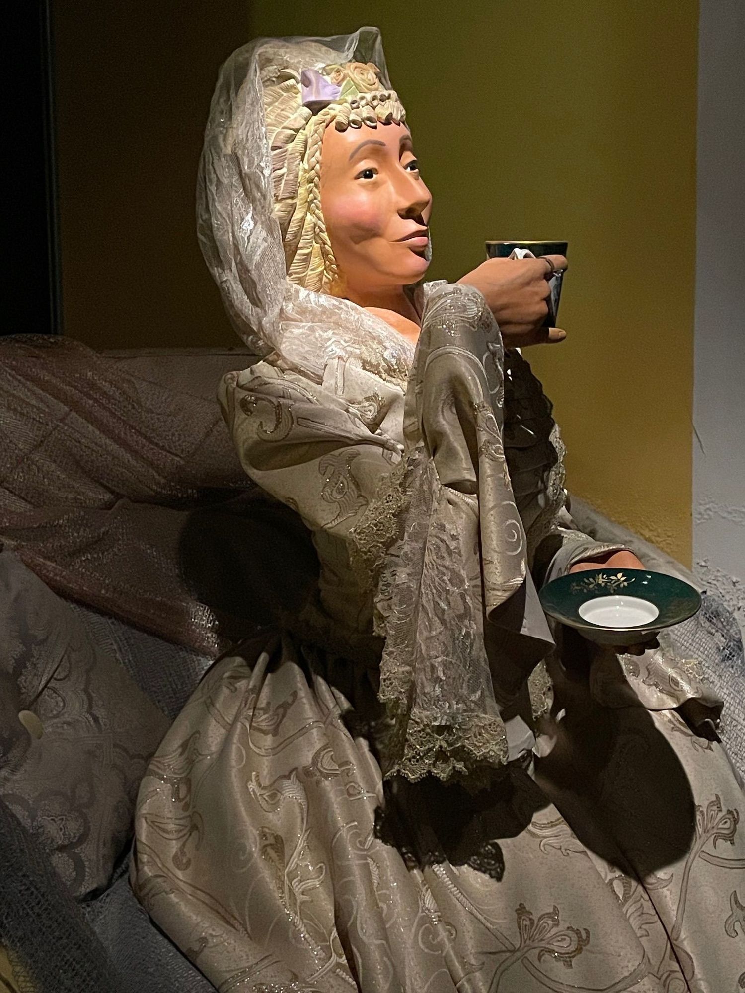 Only the rich drank chocolate of course, this woman was riding in a carriage.