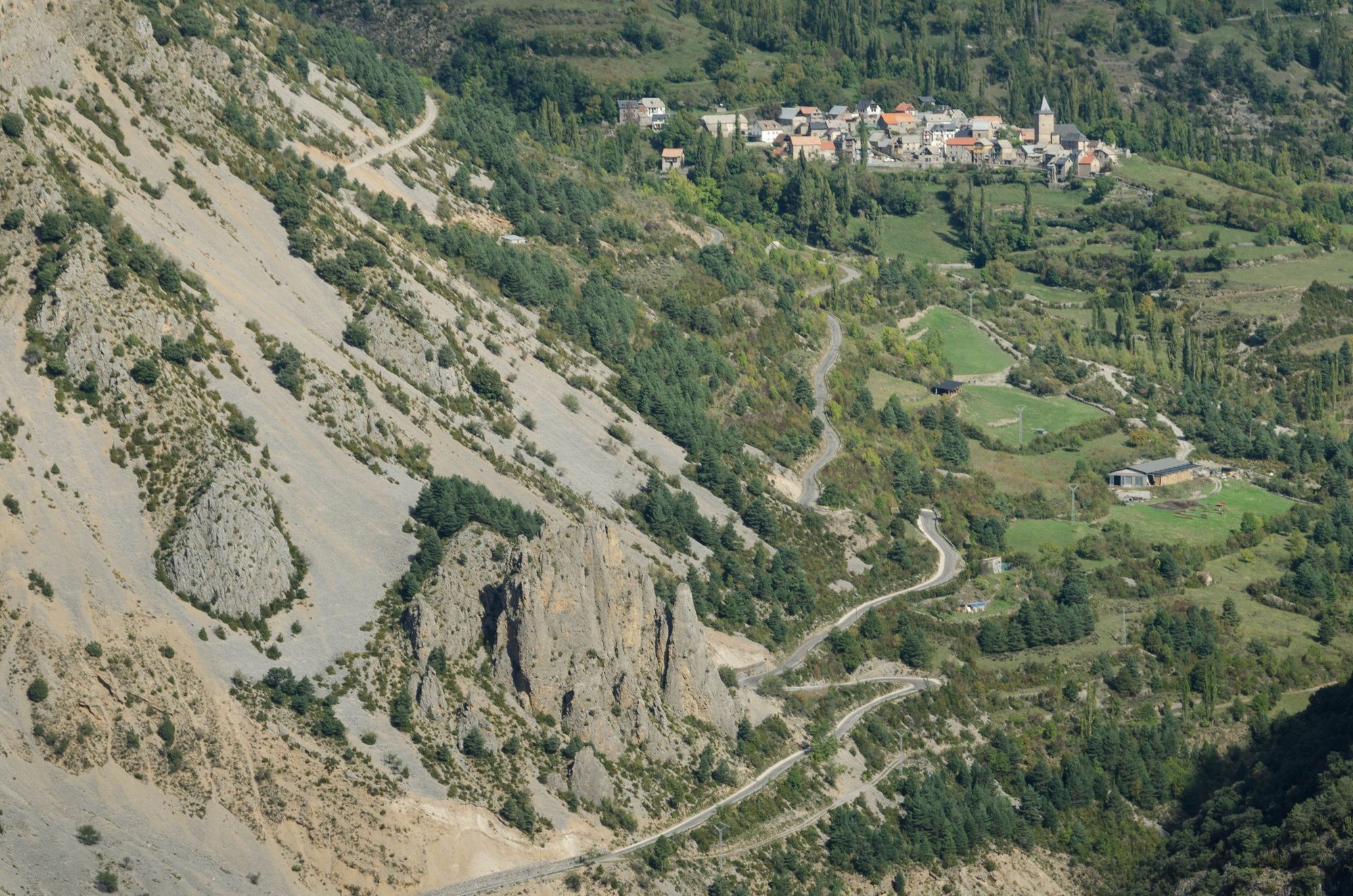 Below one saw the curiously-named village of Sin. Its neighbor there in this Feixon Ziego area was Gistain. Clearly audible far below was the Paso Inclusa d'Escun man-made hydro embalse/dam.
