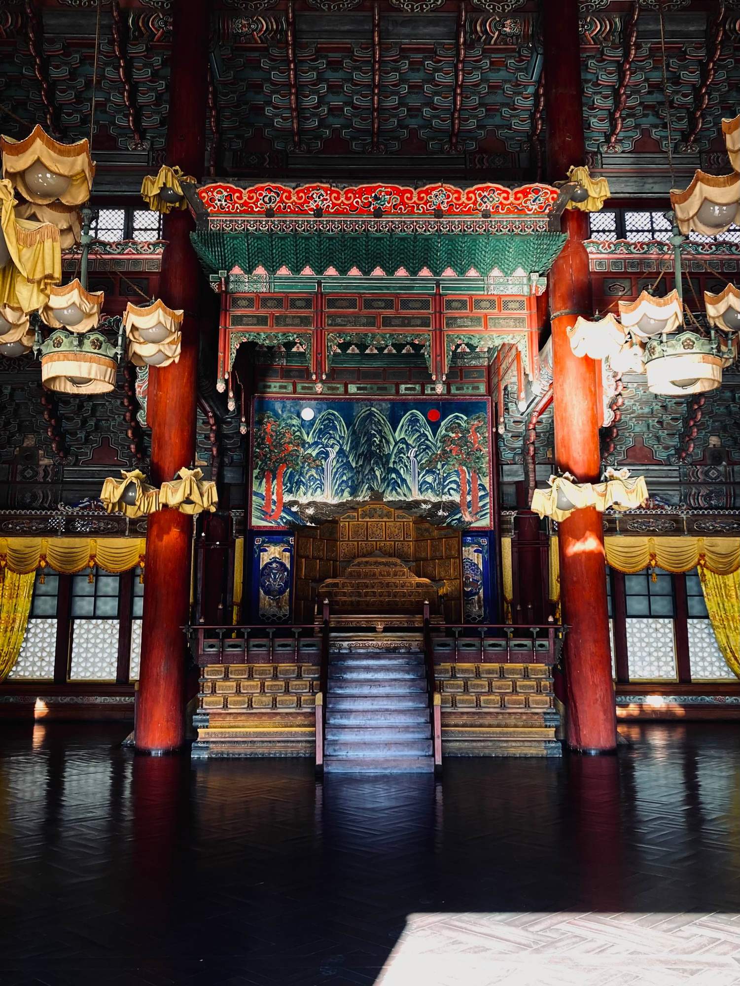 The stunning interior of the Injeongjeon throne hall. There's even more exquisite detail outside of the bounds of the photo.