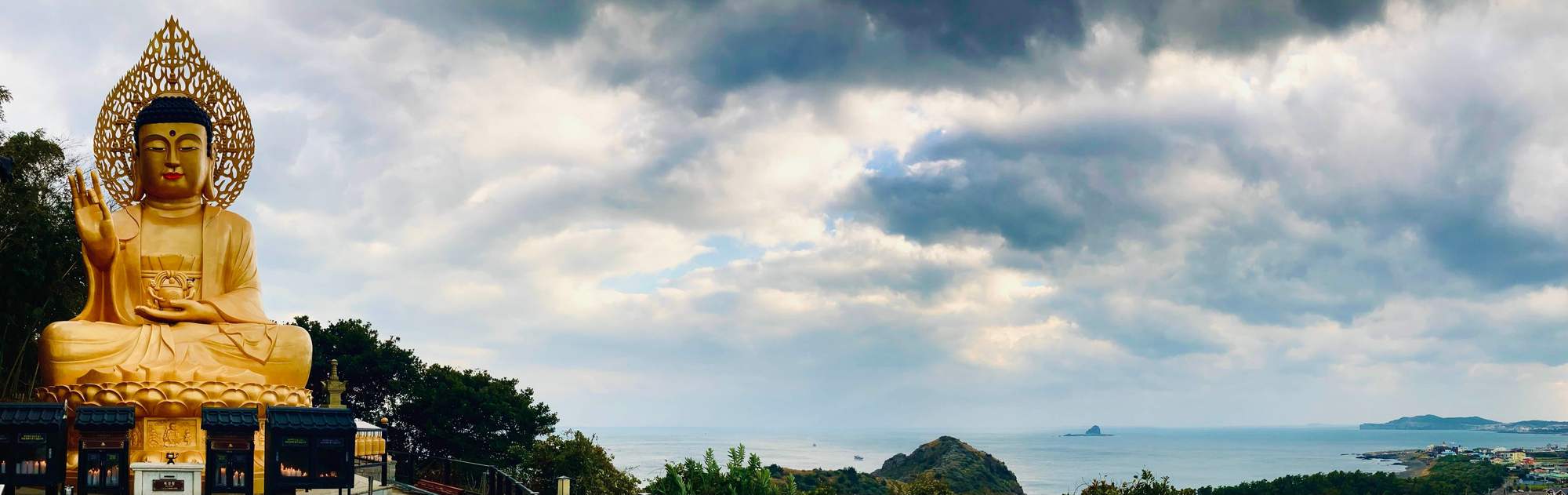 Bomunsa Temple, Jeju: A huge statue of the Medicine Buddha at the base of Mount Sanbangsan.