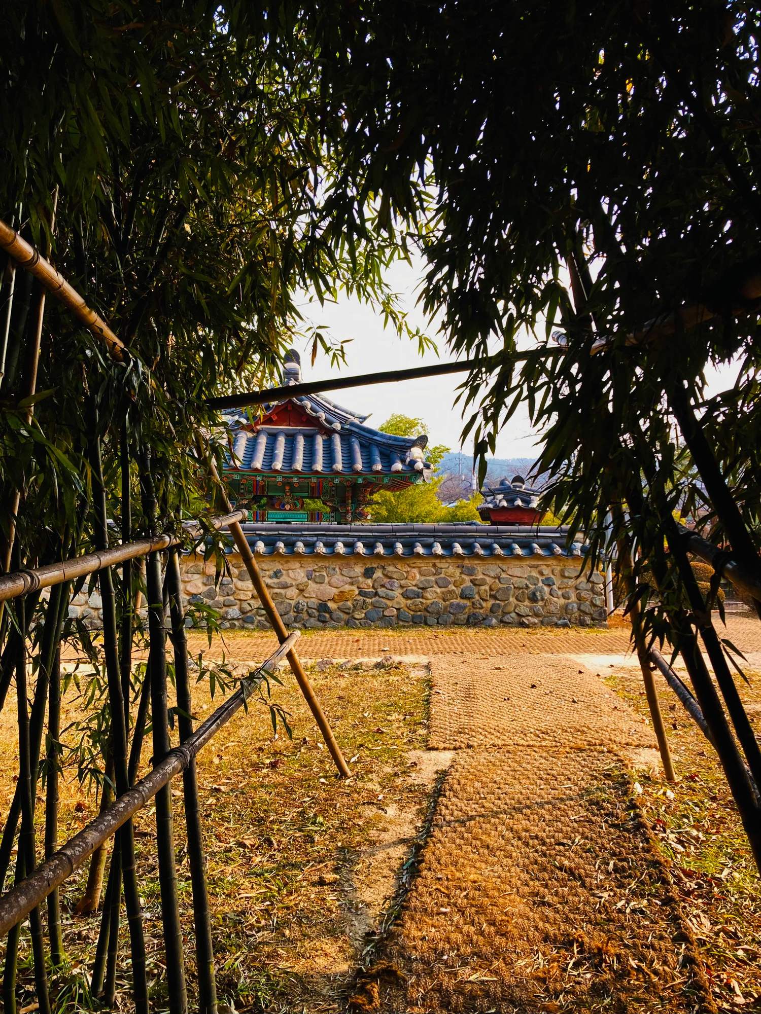 Five Royal Tombs, Gyeongju: The shrines through the bamboo forest.