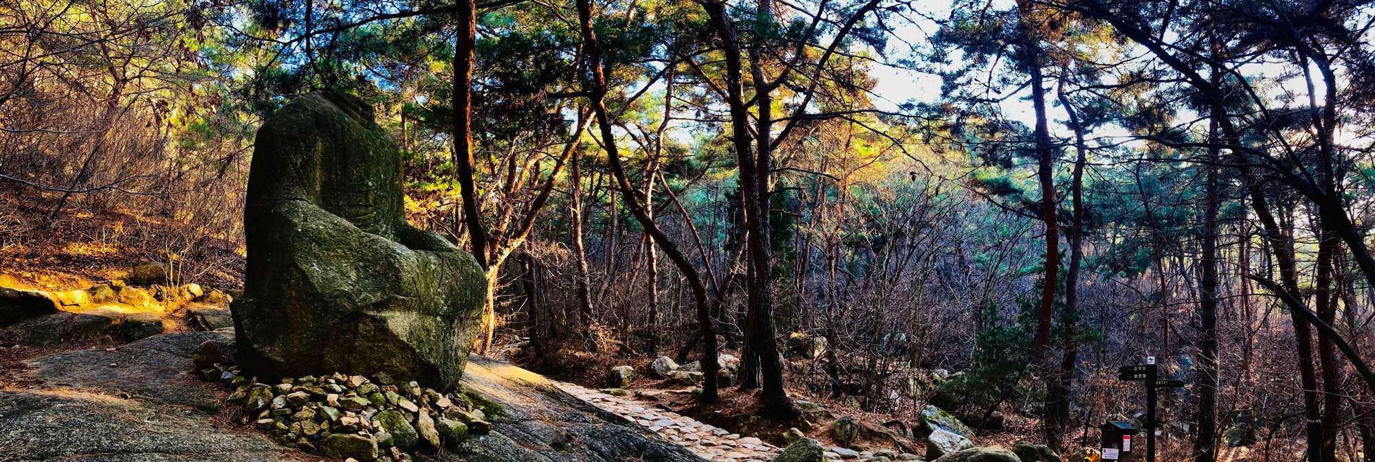 Mount Namsan (Western side), Gyeongju: The headless statue of the Future Buddha, on the trail.