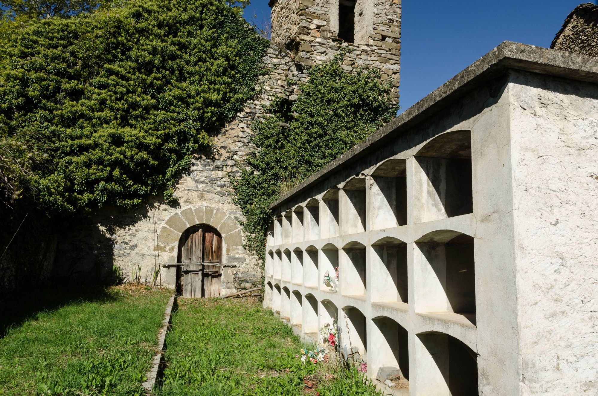 Escuain village is a ghost town right by the gorge. It was once a well-known butter-producing village. Folks would once barter butter for wine. A scattered collection of crumbling old buildings still exist, like the one shown below. Shown here is Escuain's historic church/mausoleum, its empty hutches the result of expensive rates that apparently drove historic farm families to bury and inter elsewhere.