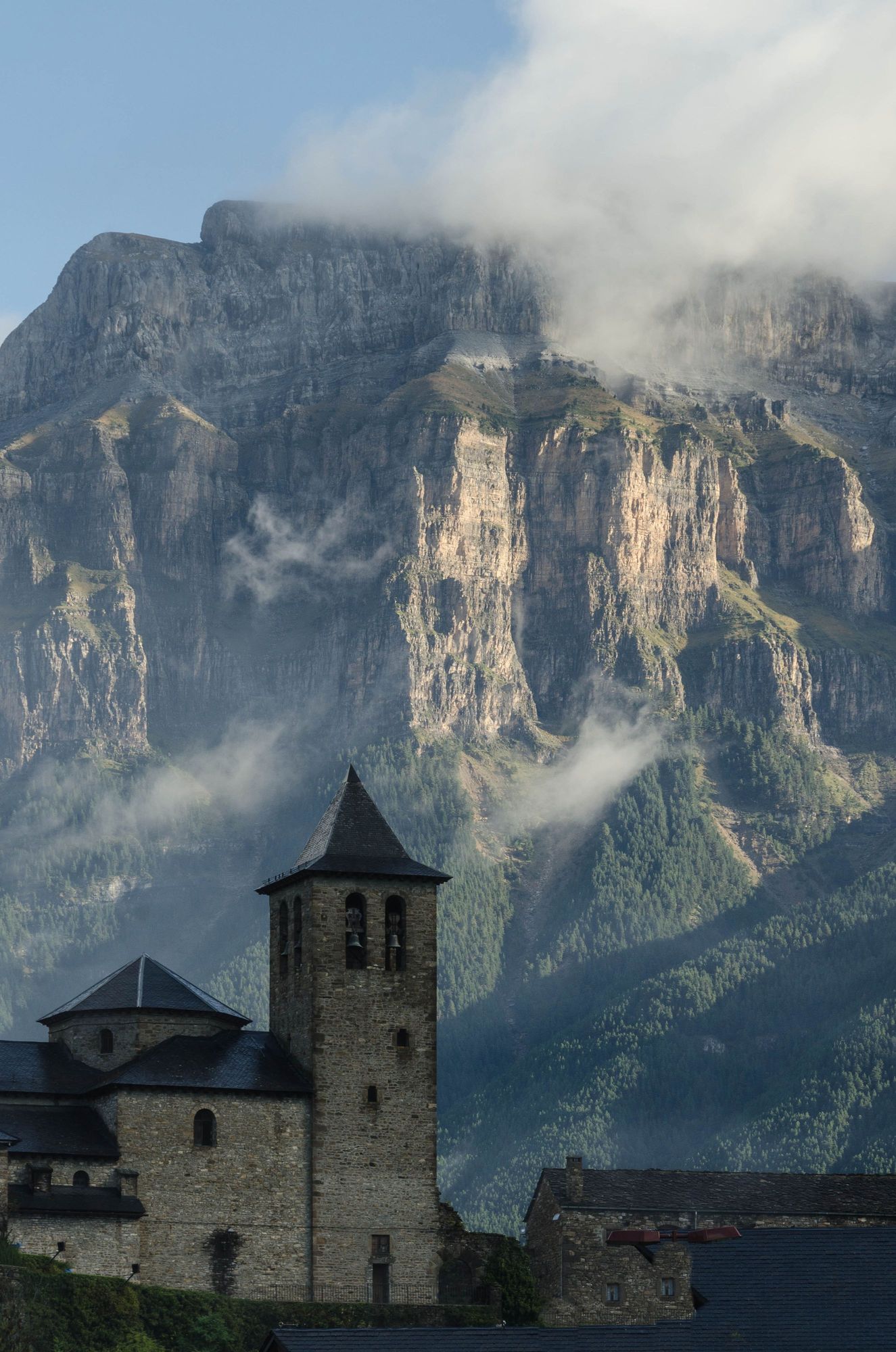 This is Torla, a town with a peerless location with Mt. Mondaruego looming above. Just as I took this shot, a young Chinese tourist couple tried to squeeze their rental between two tightly parked cars. There was an audible SMACK!! There'd been plenty of open spaces elsewhere in that parking lot, so the local owner of the most damaged car came running with a WTF?! look on his face! Btw, just west of Torla was the site of that recent ski lift accident.