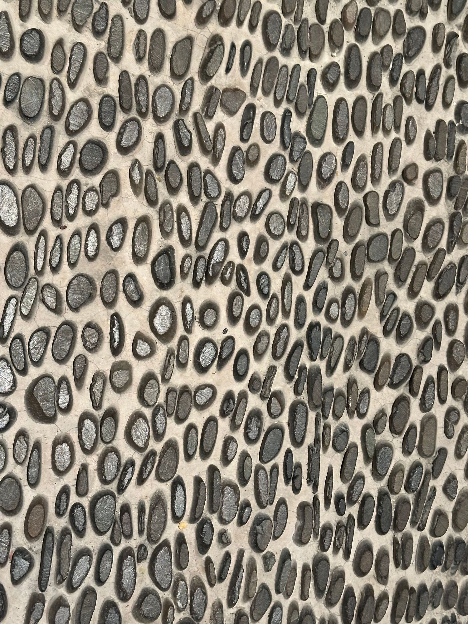 Gorgeous floors in public areas..stone inset into cement..must find out details