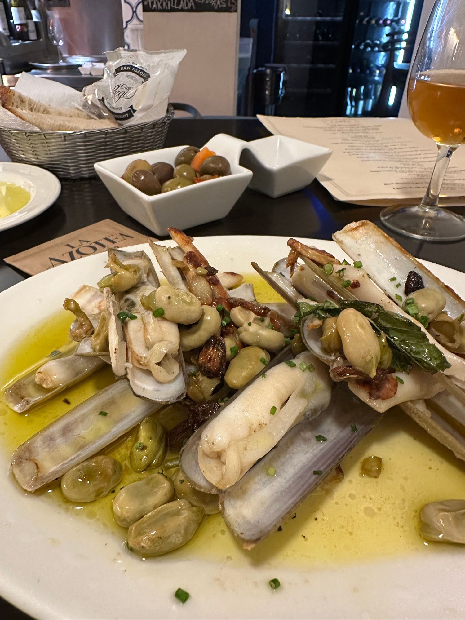 My less-than-successful razor clams, which were eliminated from my bill even though I had eaten half of this "half order."