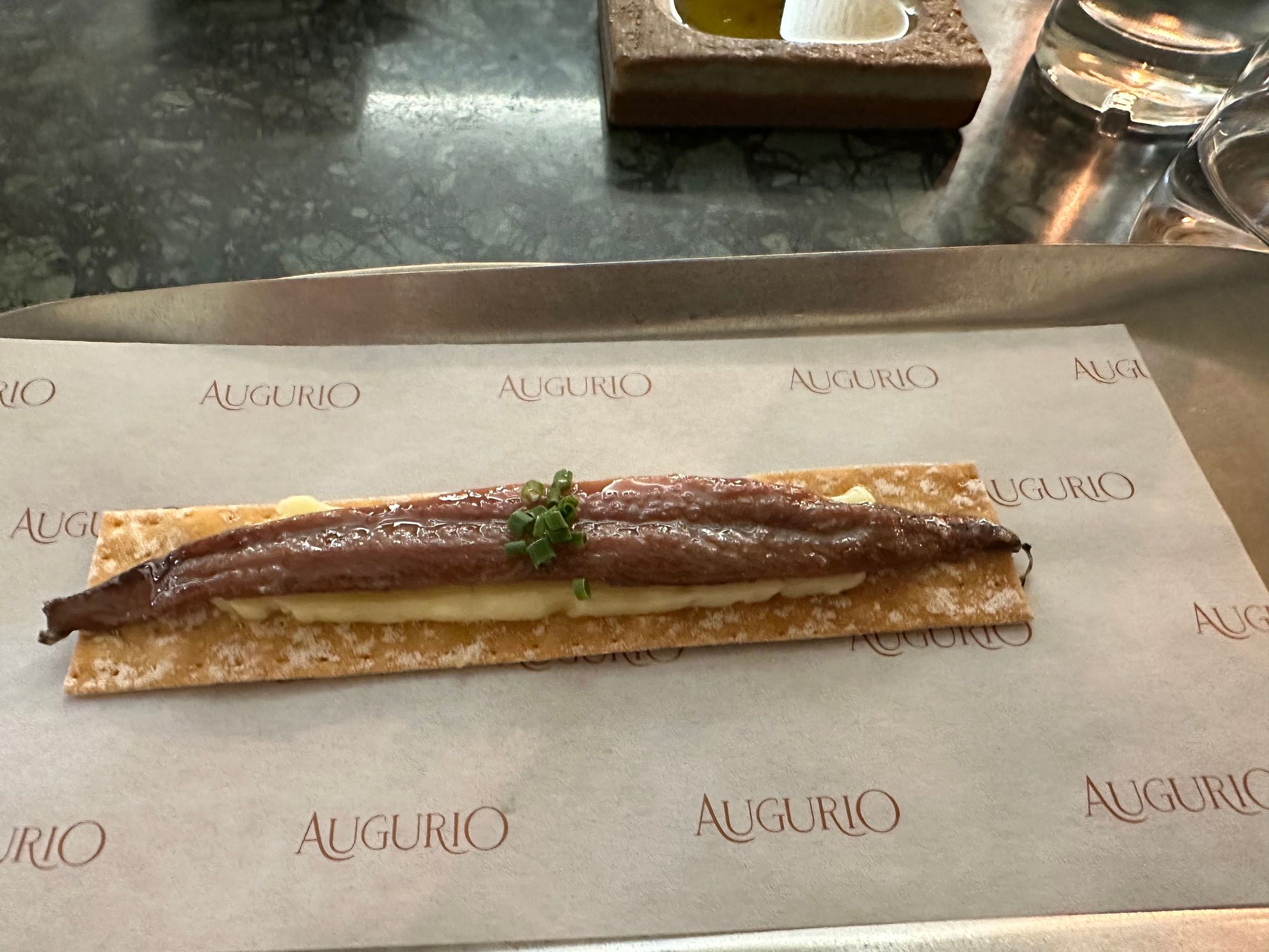 I was feeling so poorly that I managed only one pic of the food; this is their acclaimed anchovy with blue cheese butter. I followed by grilled hearts of lettuce with cheese.....